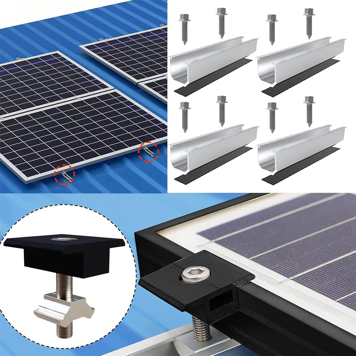 Высококачественный алюминиевый сплав: держатель солнечной панели изготовлен из алюминиевого сплава (AL6005-T5), который является сильным и долговечным, устойчивым к коррозии и подходит для работы в любых погодных условиях.