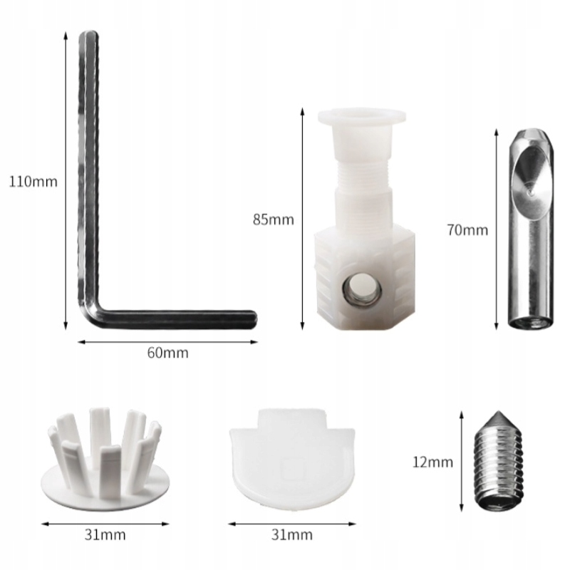 В комплект входит набор элементов, необходимых для правильного и прочная установка, включая шестигранный ключ.