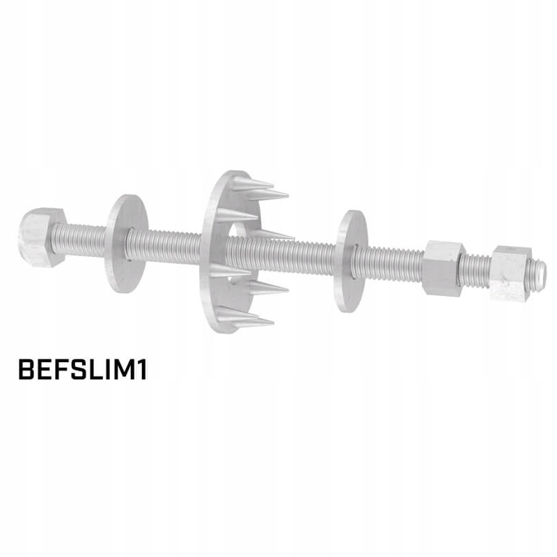 Монтажный комплект Rothoblaas Slim BEFSLIM1 содержит необходимые для установки компоненты. Это стержень с резьбой М10, гайки и шайбы, а также специальная шайба, предотвращающая перемещение элемента в древесине. Все элементы изготовлены из гальванически защищенной углеродистой стали.
