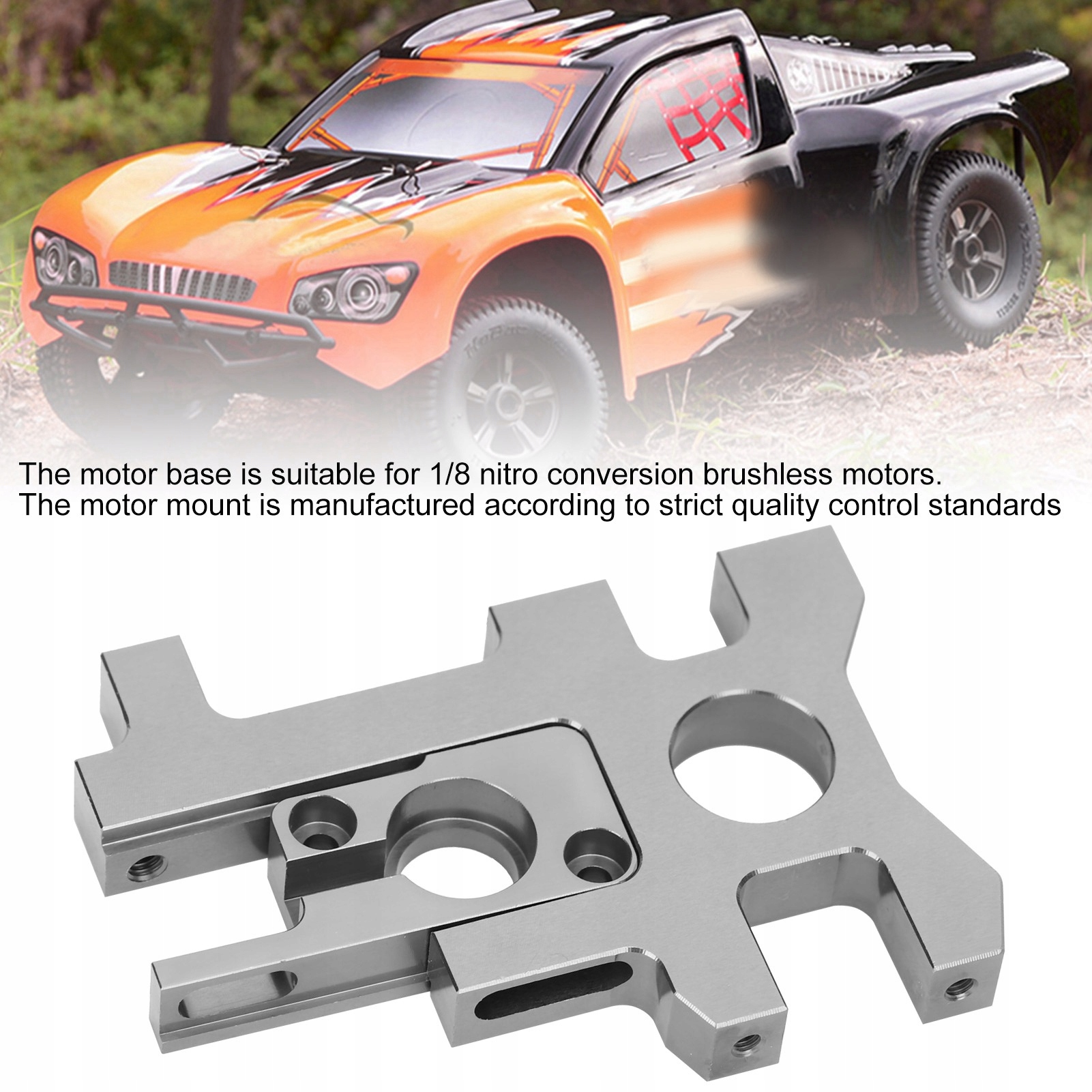 1. Изготовлен из высококачественного алюминиевого сплава, прочный и долговечный. 2. База двигателя подходит для бесщеточных двигателей с нитропреобразованием 1/8. 3. Опора двигателя изготовлена в соответствии со строгими стандартами контроля качества, что обеспечивает стабильность и отличную производительность. 4. Легкий вес не увеличивает нагрузку на автомобиль с дистанционным управлением. 5. Легко собирать и разбирать.