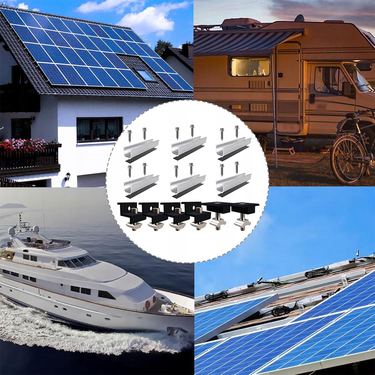 Высококачественный алюминиевый сплав: держатель солнечной панели изготовлен из алюминиевого сплава (AL6005-T5), который является прочным и долговечным, устойчивым к коррозии и подходит для любых погодных условий.