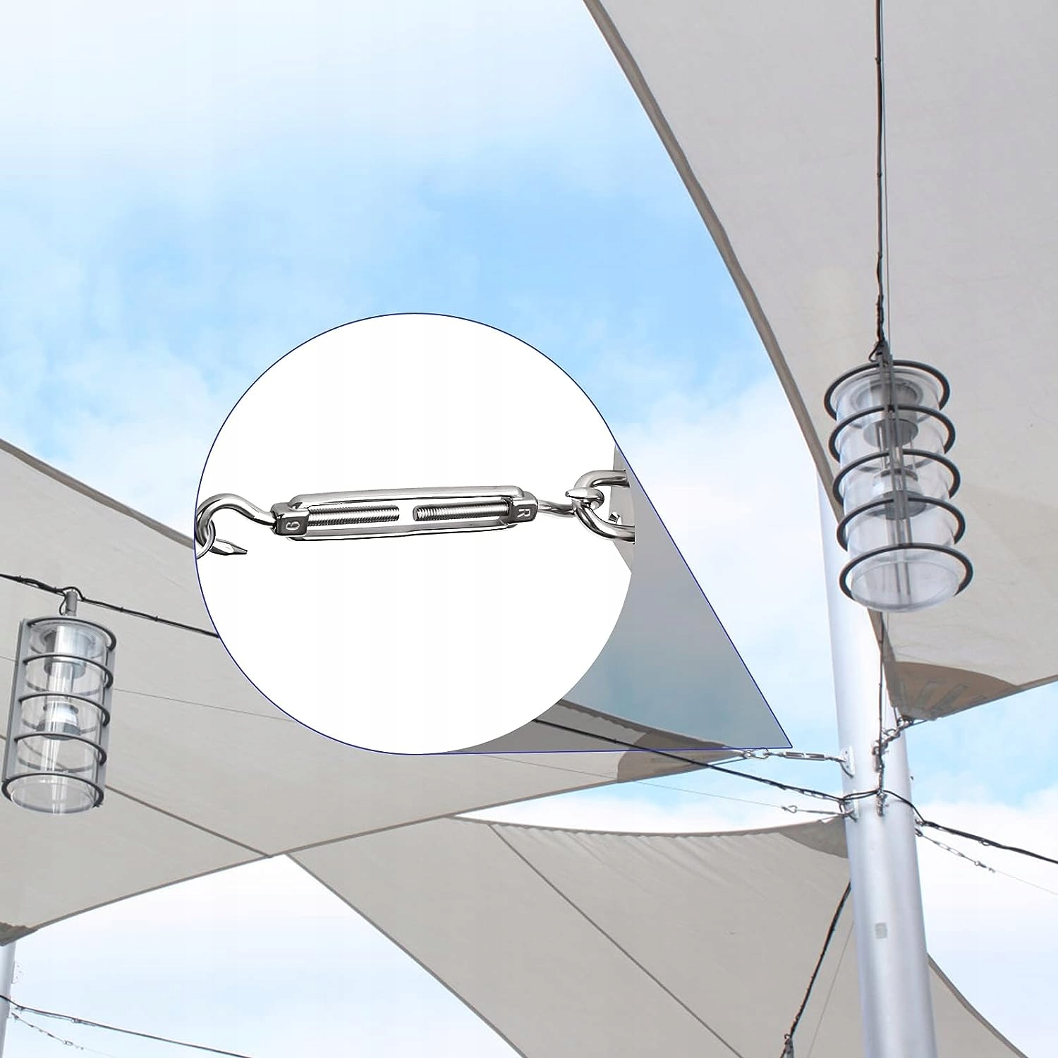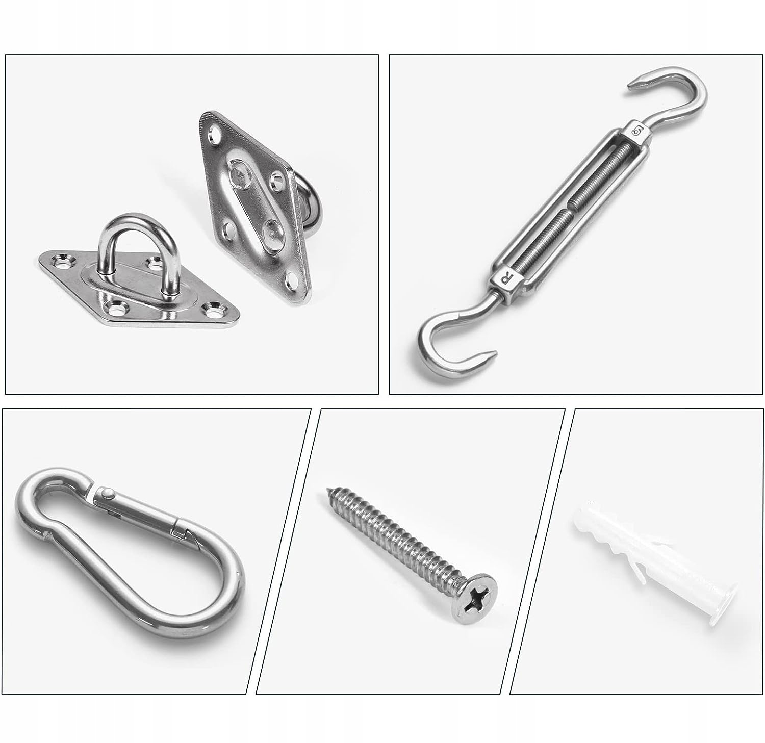 👍👍 Регулируемый талреп: Для регулировки натяжения или длины веревок, кабели, сухожилия. затяните парус при установке. Вы можете выбрать расстояние шторы от фиксированной стены/стойки/точки и очень плотно расположить навес.