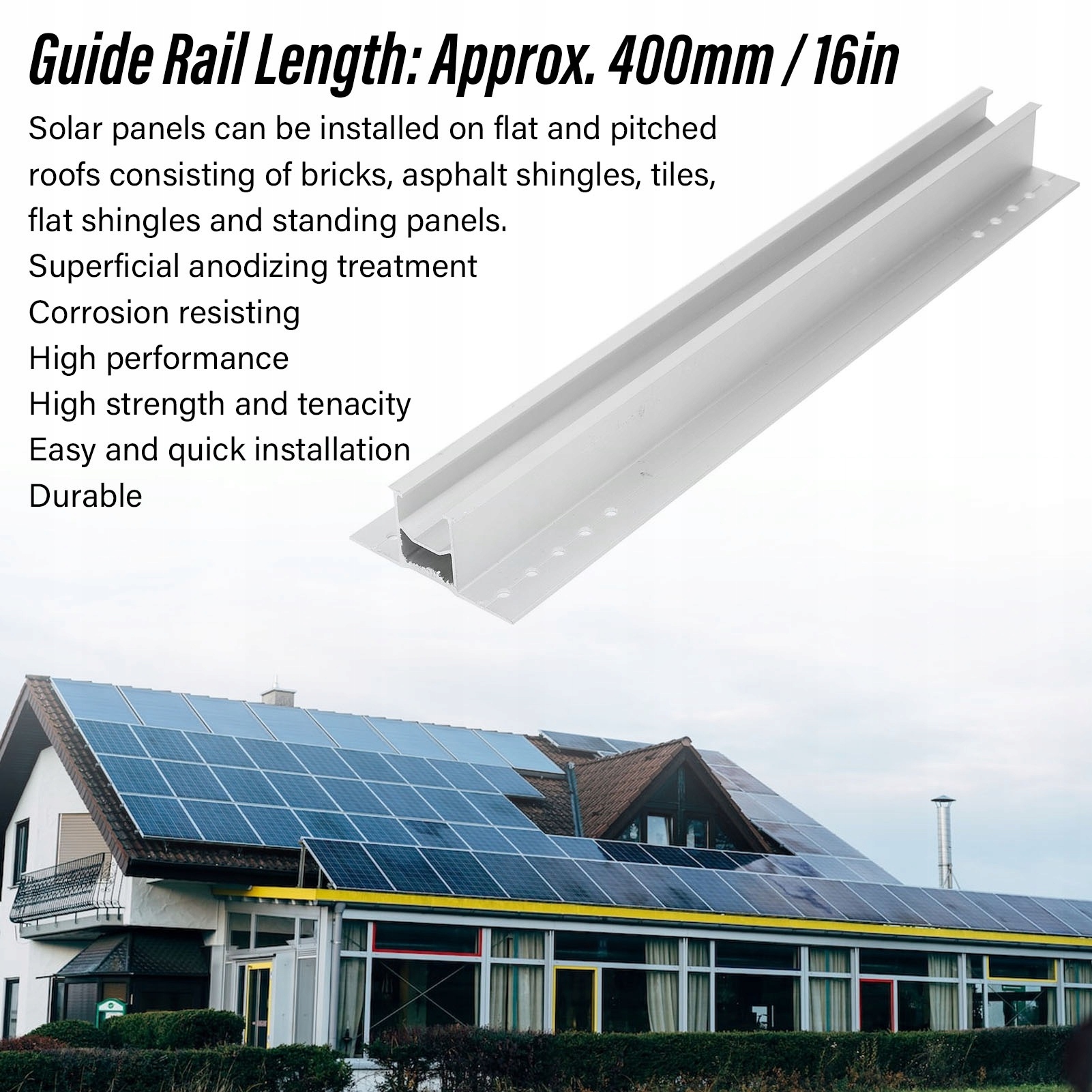 2. Длина рельса: Mini Rail имеет длину 400 мм (16 дюймов), совместима со многими типами солнечных батарей и подходит для всех типов стальных, кирпичных и асфальтовых крыш.