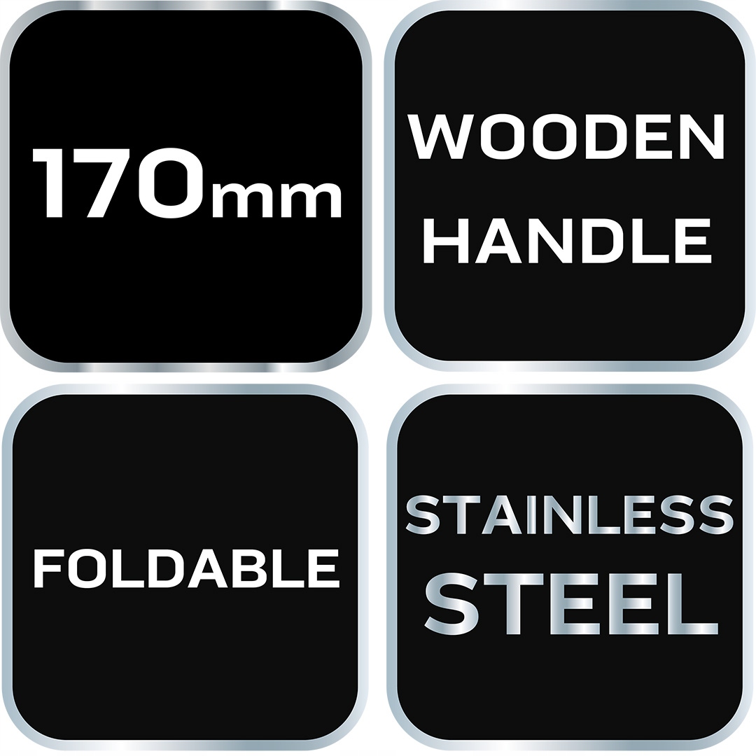 Нож монтажный с шампуром, деревянными накладками 63-017 от NEO – практичный и универсальный нож польского производства с шампуром и деревянными накладками из древесины ольхи, общей длиной 170 мм. Его отличает эргономичная ручка, которая надежно лежит в руке. Винтажный вид придает изделию вневременной характер. Нож оснащен замком, предотвращающим неконтролируемое открытие. Два лезвия повышают удобство использования. Рекомендуется для сбора грибов, для домашней мастерской и при ремонте. Сертифицировано FSC.