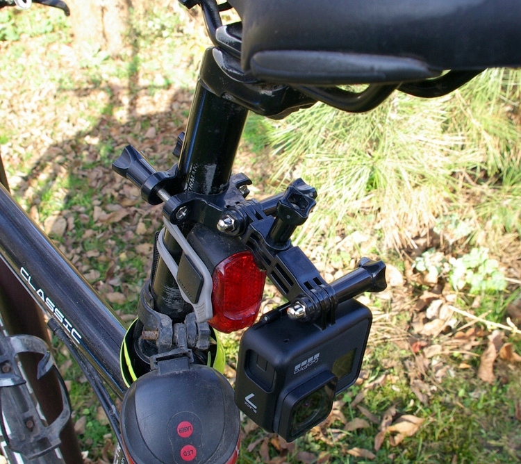 Предлагаем многофункциональный велосипедный штатив. Это отличный качественный держатель, позволяющий надежно закрепить камеры GoPro на любых трубках: велосипедных, алюминиевых, рулях.