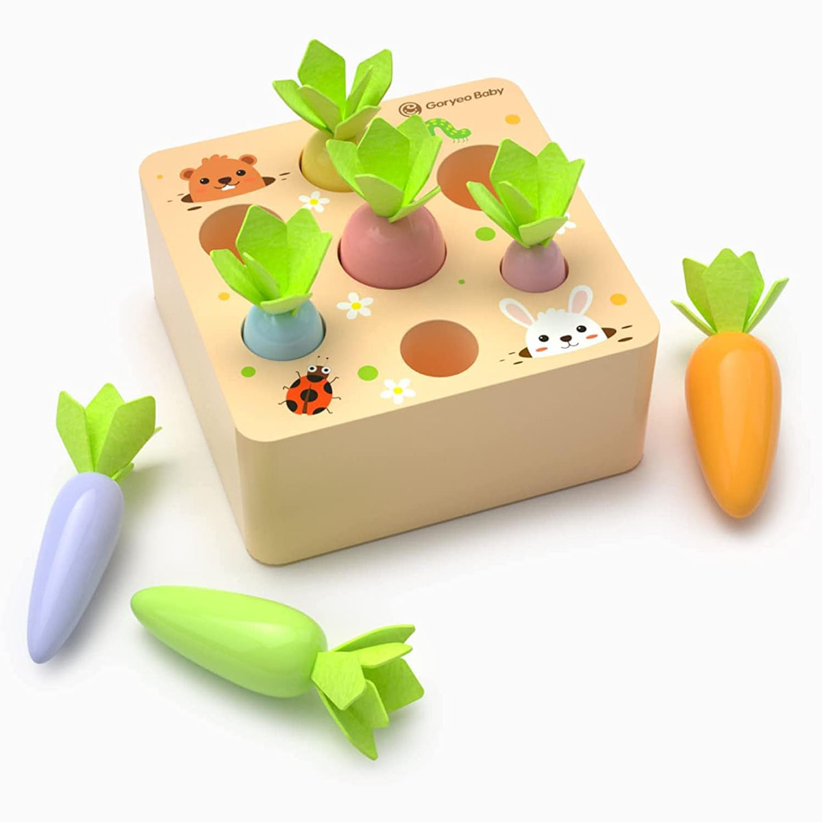 Деревянные игрушки для детей 1-3 лет | Моторика ребенка, игрушки Монтессори для детей 2-3 лет | для мальчиков и девочек от 6 до 12 месяцев | Сортировочная игра, деревянная головоломка, коллекция моркови | Развивающие подарки для детей и малышей
