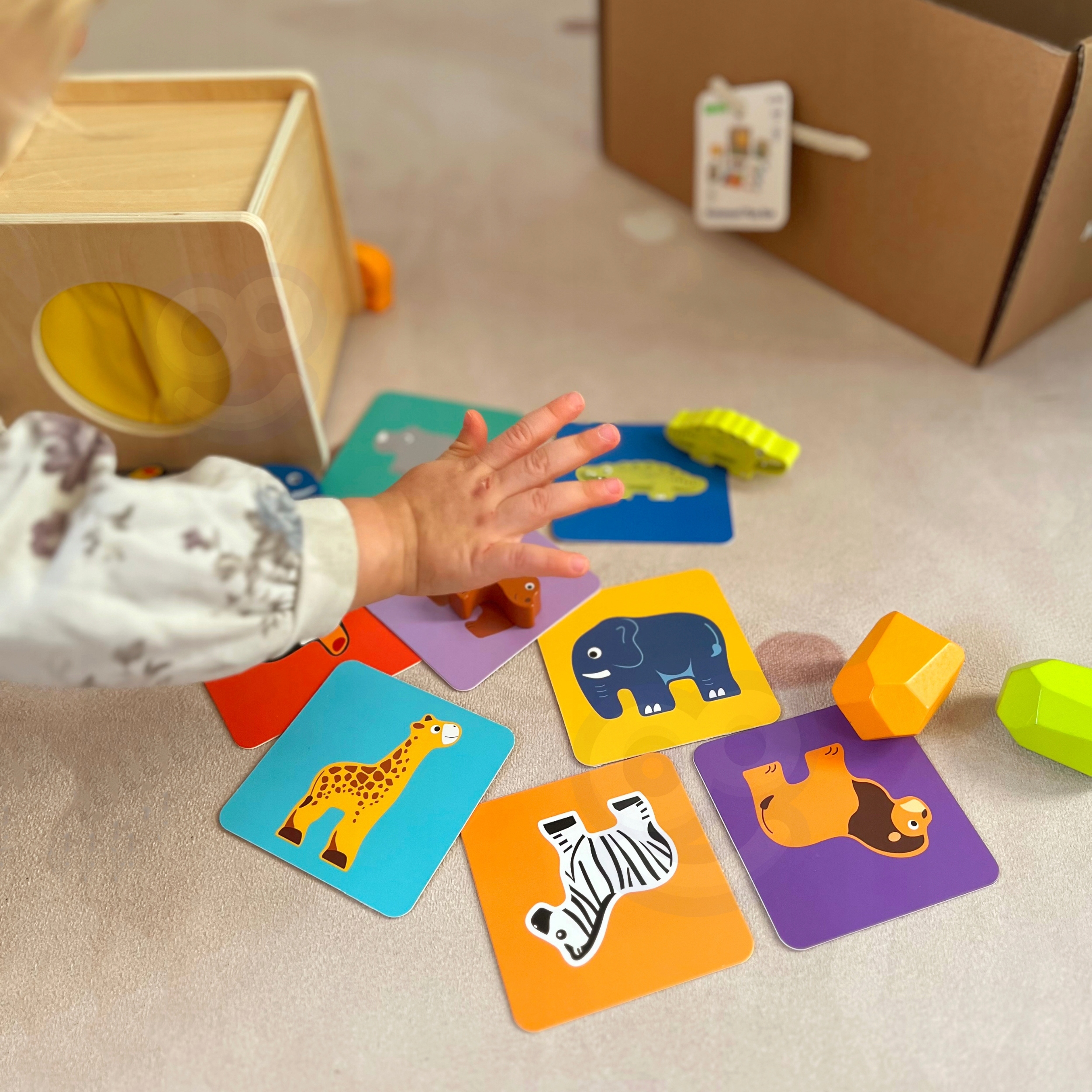 - ✅ Развивающие карточки с животными: Используются для игры в сопоставление фигурки с иллюстрацией или ее тенью.