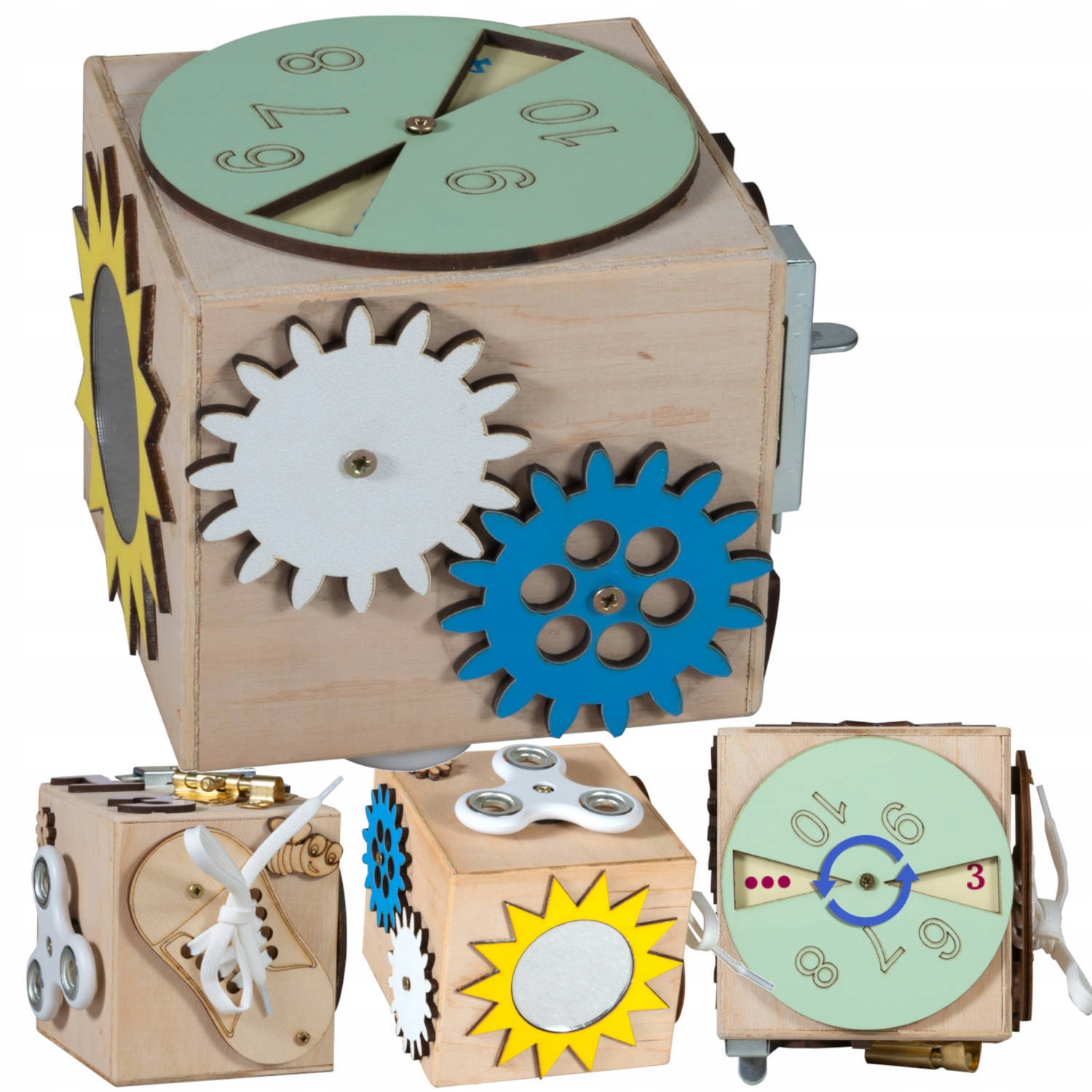 Сенсорный кубик — отличная идея для творческого развлечения вашего ребенка. Обучение через игру – лучший способ правильного развития детей. Куб — идеальное место для тренировки первых чисел, шнуровки обуви или игры со спиннером. Правильно подобранные движущиеся элементы помогут вашему ребенку развить творческие способности и навыки ручного труда. Кроме того, это будет стимулировать его творческие способности и побудит его исследовать окружающий мир.