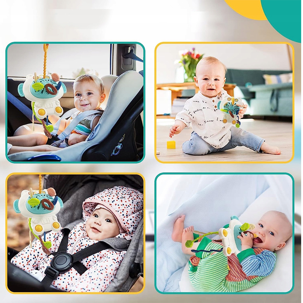 - 🎉 -【Игрушки с мелкой моторикой для путешествий】 - Игрушки для путешествий для маленьких детей 1–3 лет можно подвешивать на детские сиденья, коляски и люльки. Компактный размер и легкий вес делают детские игрушки портативными с 6 месяцев и пригодными для путешествий по дорогам, поездам и самолетам. Струны дают богатые тактильные ощущения, малыши могут укрепить мышцы рук, развить мелкую моторику, сенсорное исследование, мелкую моторику и зрительно-моторную координацию, тянув и прикасаясь к сенсорным игрушкам.