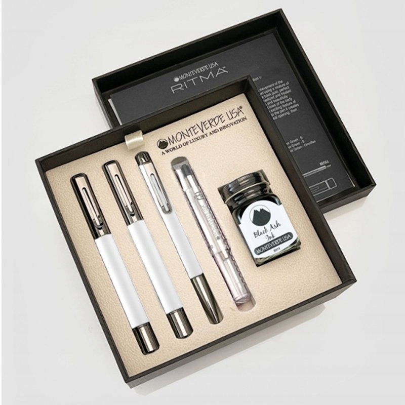MONTEVERDE RITMA СЕРЕБРЯНЫЙ НАБОР ПЕРЬЕВАЯ РУЧКА, РУЧКА И ШАРИКОВАЯ РУЧКА В КОРОБКЕ