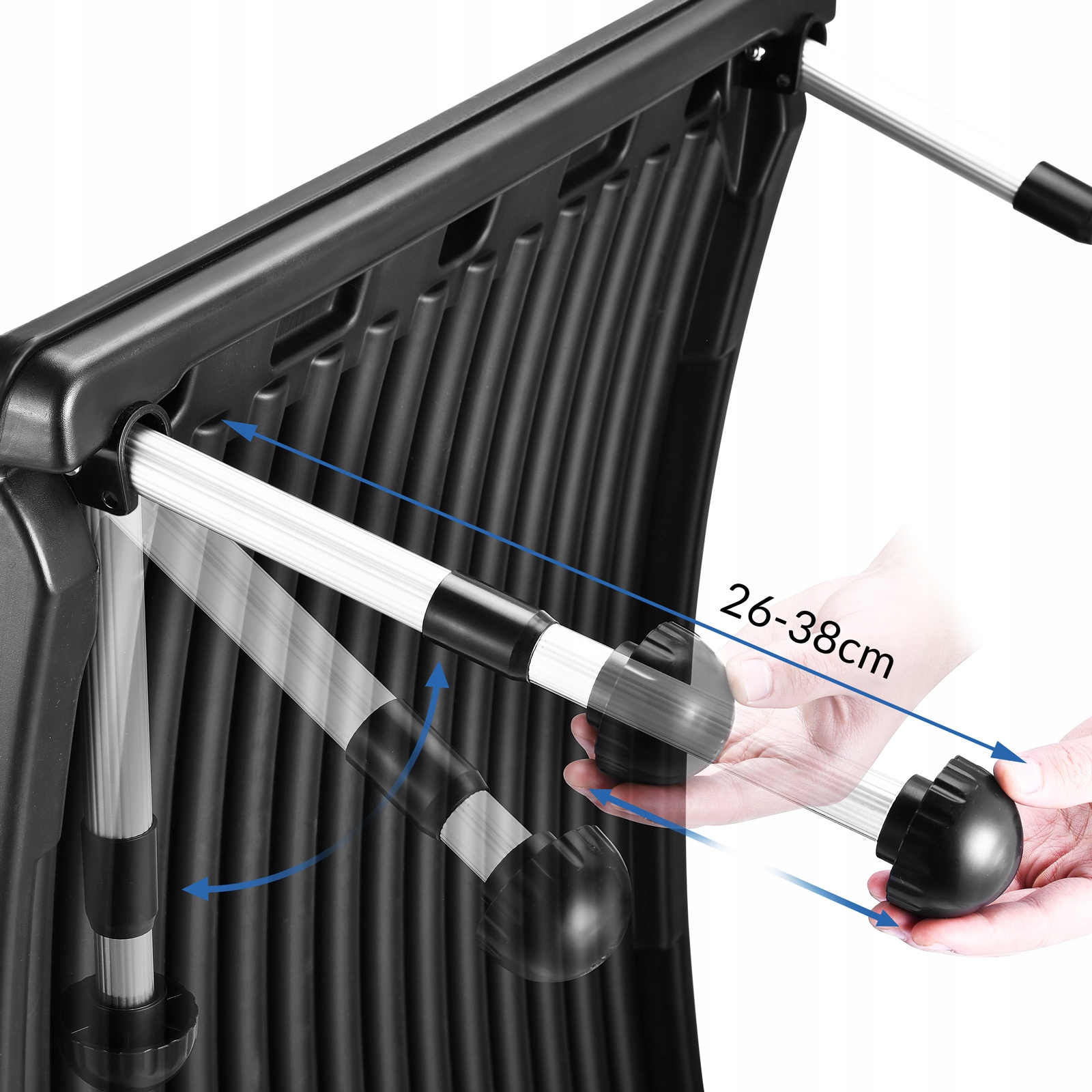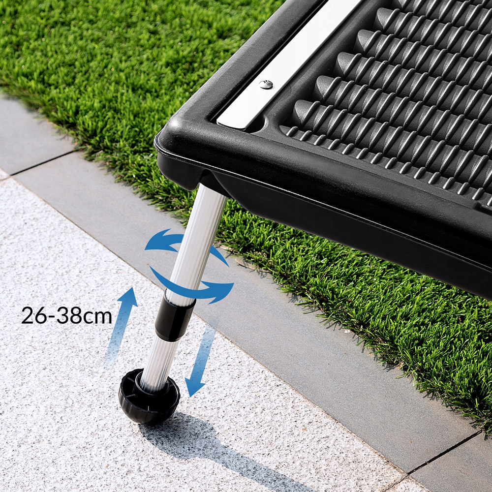 Коллекторы имеют алюминиевые ножки, которые можно регулировать в диапазоне от 26 до 38 см, благодаря чему солнечную панель можно оптимально расположить по отношению к солнцу.