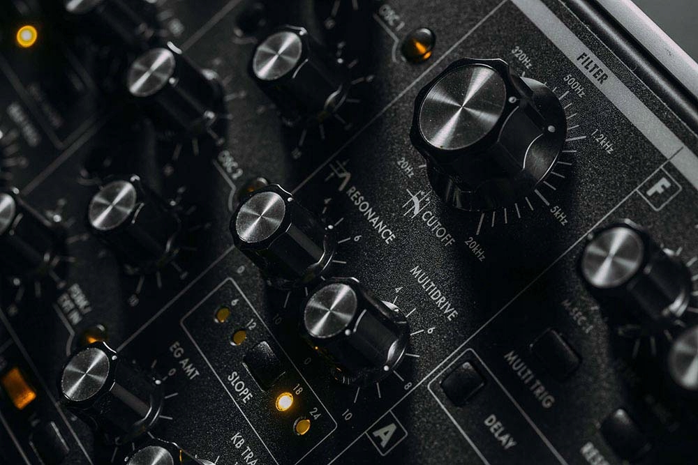 • Фильтр: Лестничный фильтр Moog с выбором наклона: 6/12/18/24 дБ/октава и Мультидрайв,