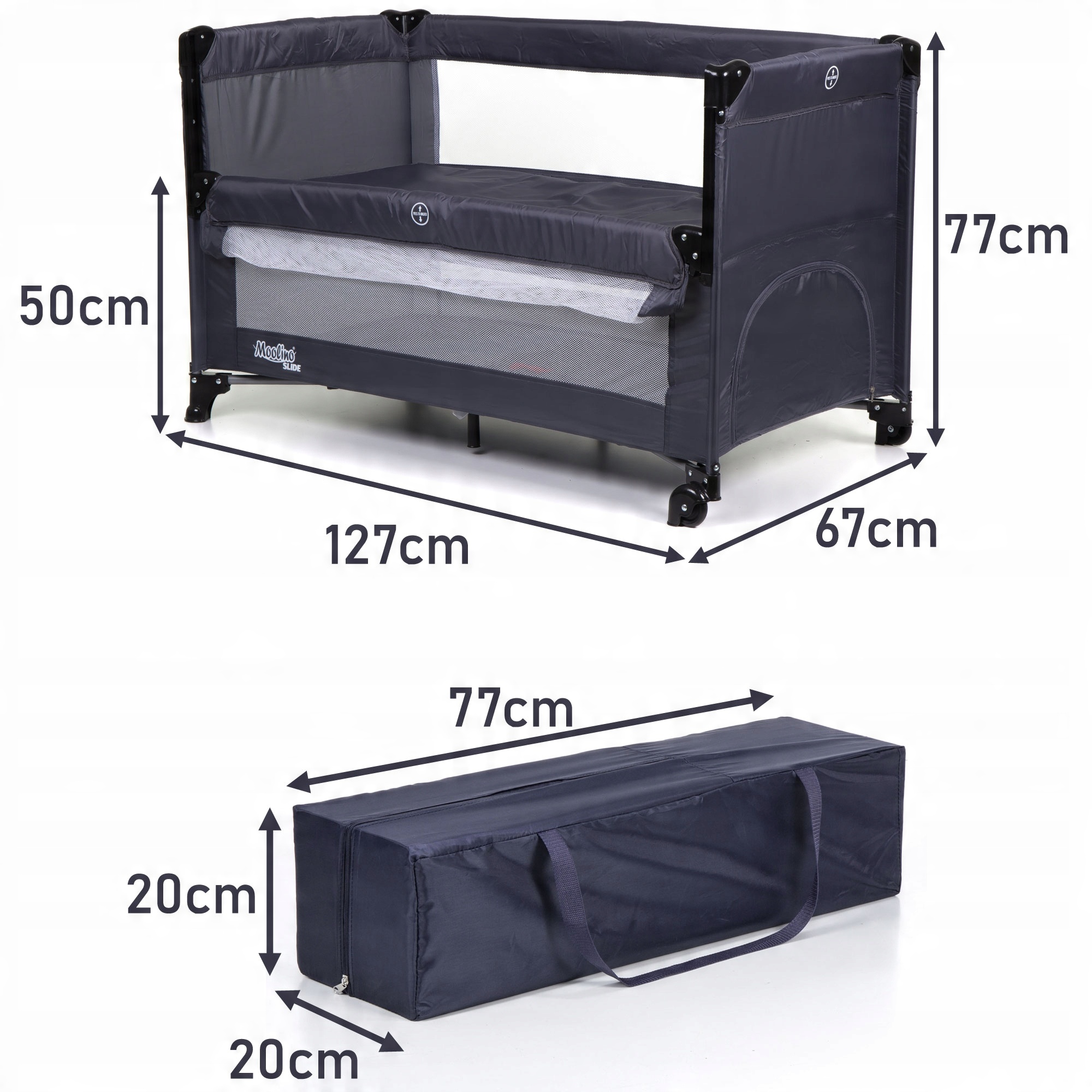 - Легко передвигать кроватку: 2 колеса с автоблокировкой и сумка.