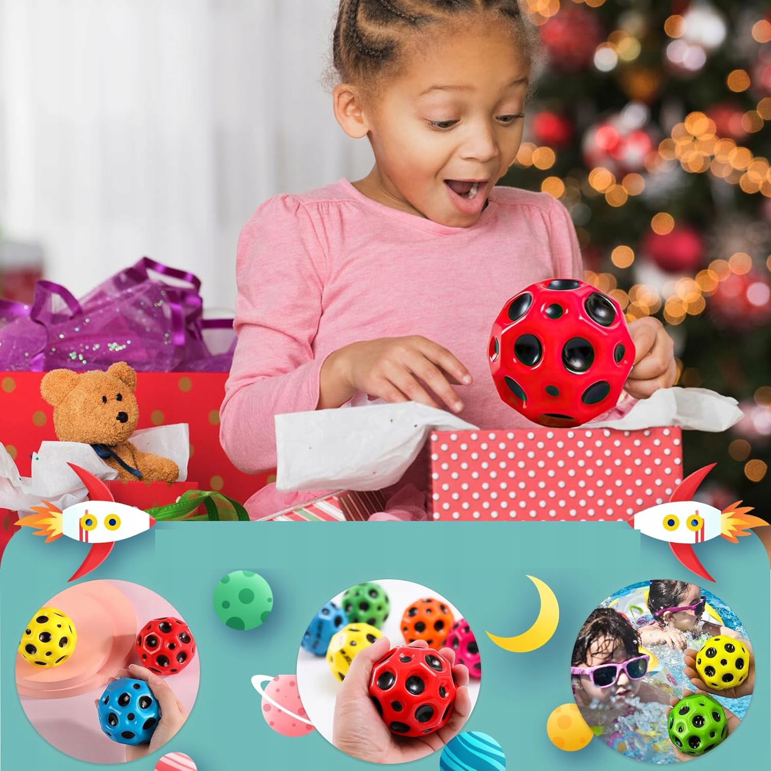 🌖 Удар без G: Созданный как самый высоко прыгающий космический мяч на рынке, он издает характерный «стук» при ударе о землю и подпрыгивает выше на любой твердой поверхности, поэтому вы зацепитесь и продолжите играть. Вы, должно быть, счастливы.