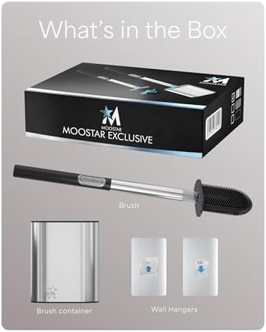 MooStar СИЛИКОНОВАЯ ЩЕТКА ДЛЯ ТУАЛЕТА ЧЕРНАЯ ПЛОСКАЯ + НАСТЕННЫЙ ДЕРЖАТЕЛЬ