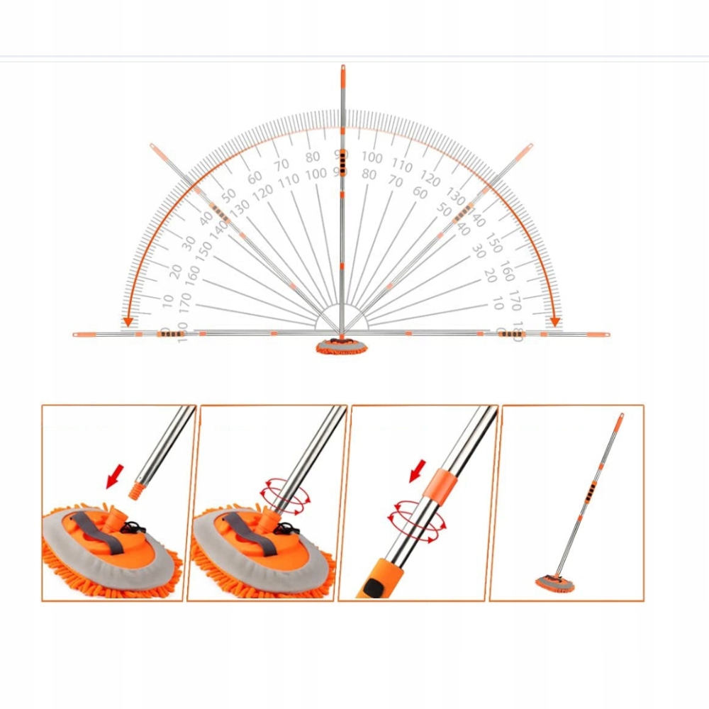 -🟡wyjątkowo długa szczotka do mycia samochodu o długości 157 см z łatwością dotrze na dach samochodu i inne wyższe miejsca. Регулируемая головка швабры в диапазоне 180 градусов обеспечивает большую гибкость при промывании автомобиля, поэтому вы можете легко провести комплексную очистку.