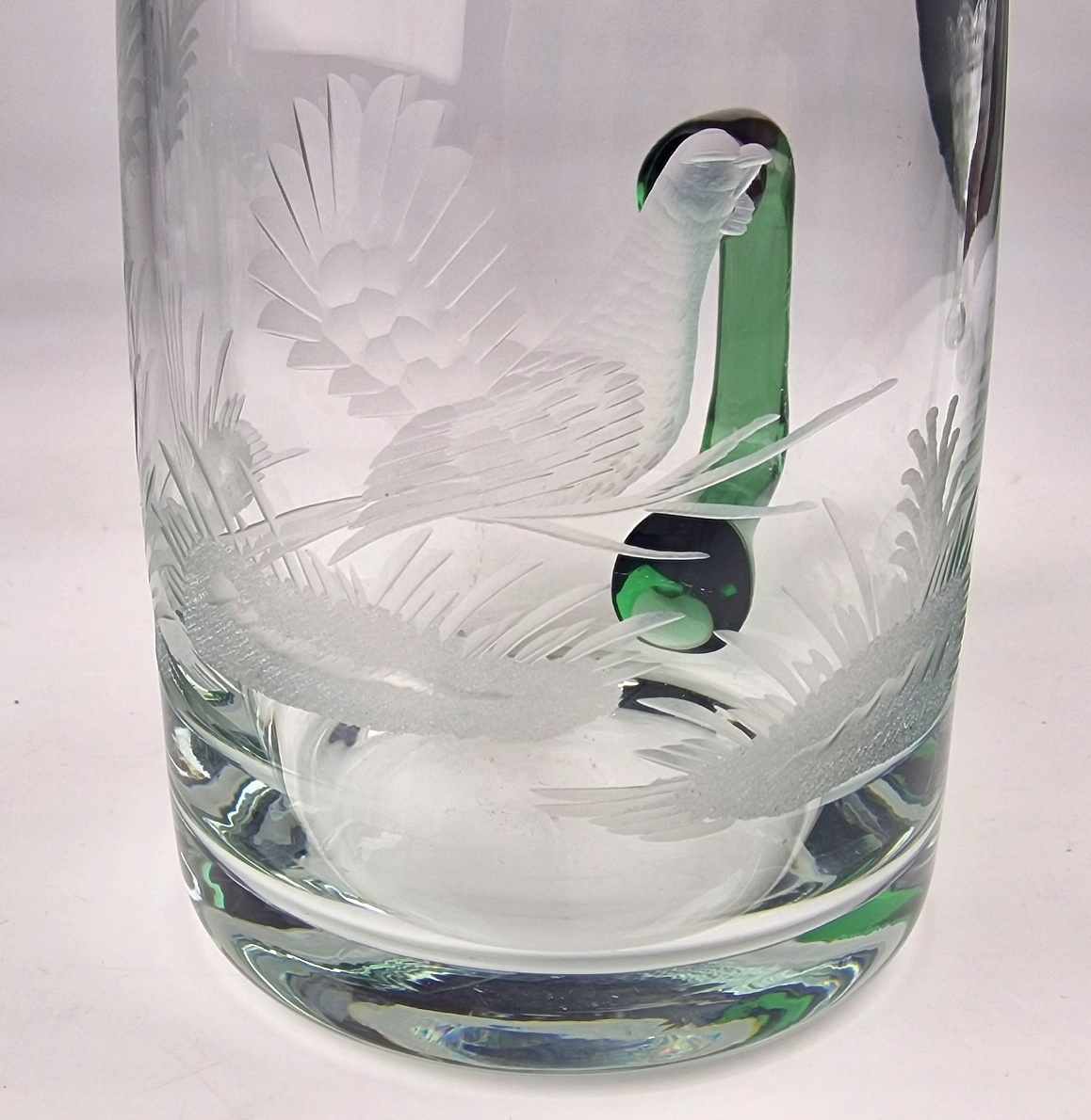 МОРДА из ХРЕЗНОГО СТЕКЛА, ЗЕЛЕНАЯ РУЧКА, УКРАШЕНИЕ В виде ПТИЦЫ / ВИНТАЖ