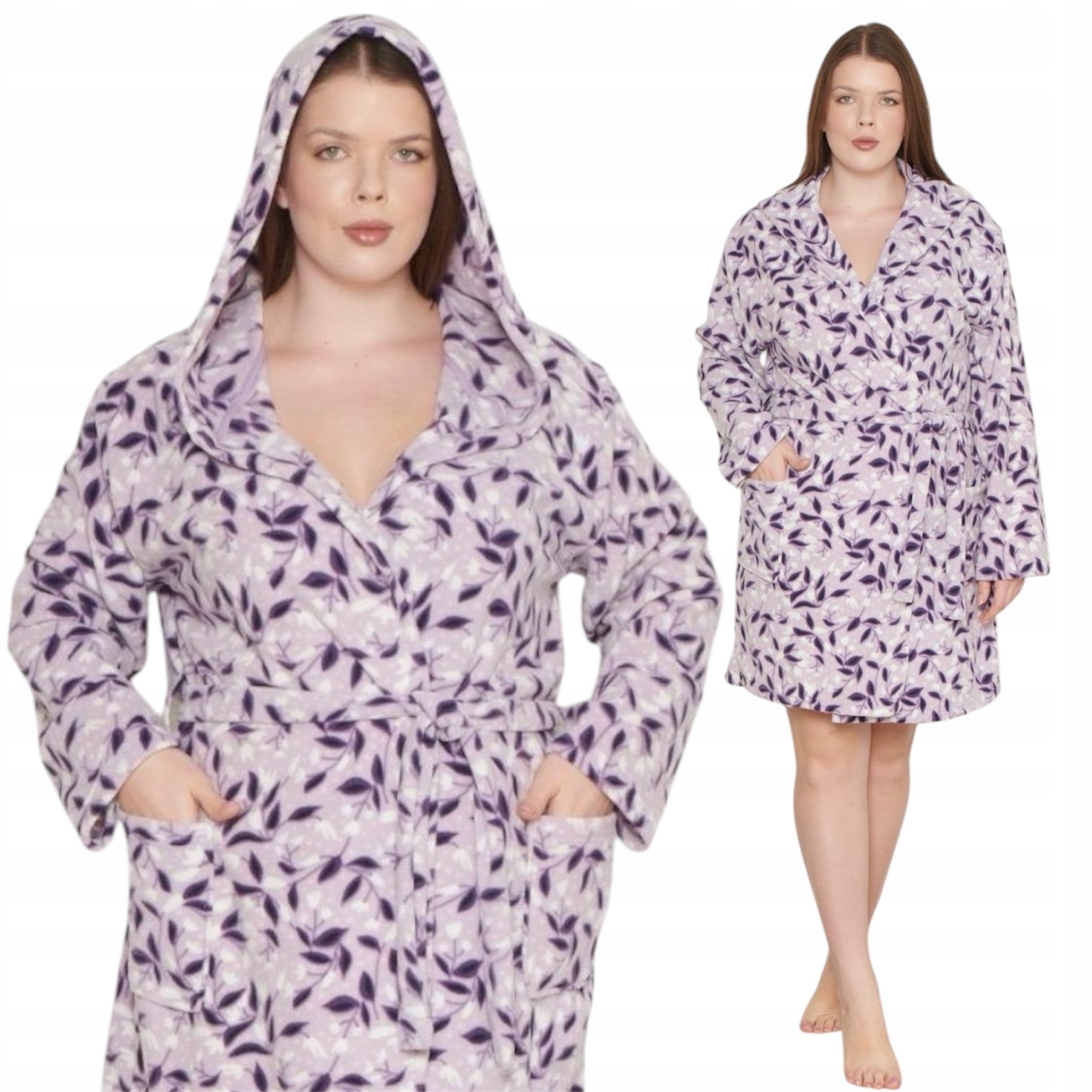 Женский женский халат женского размера, связанный с талией капюшона
