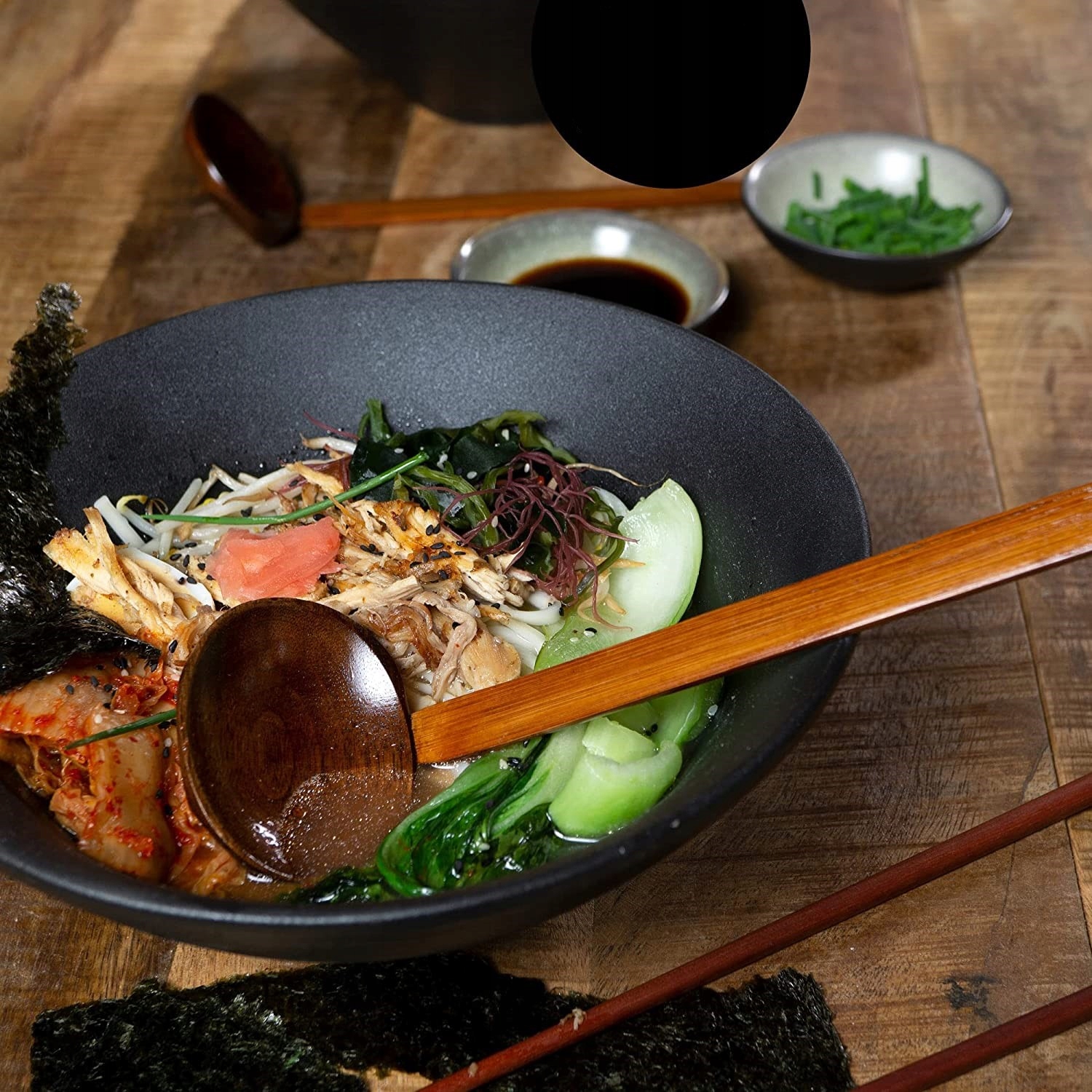 Moritz & Moritz Ceramic Bowl Ramen - 24 см Ø h1> чаша черная чаша - для супа, фо и суши миски h1> с беконом и ложкой.
