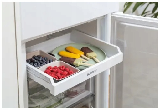 Специально разработанный ящик в виде лотка в морозильном отделении позволяет идеальный обзор хранящихся замороженных продуктов – нельзя не заметить даже те, что находятся в самом конце. Ящик расположен в верхней части морозильной камеры. Ящик можно выдвинуть полностью, чтобы можно было достать все вещи в ящике.