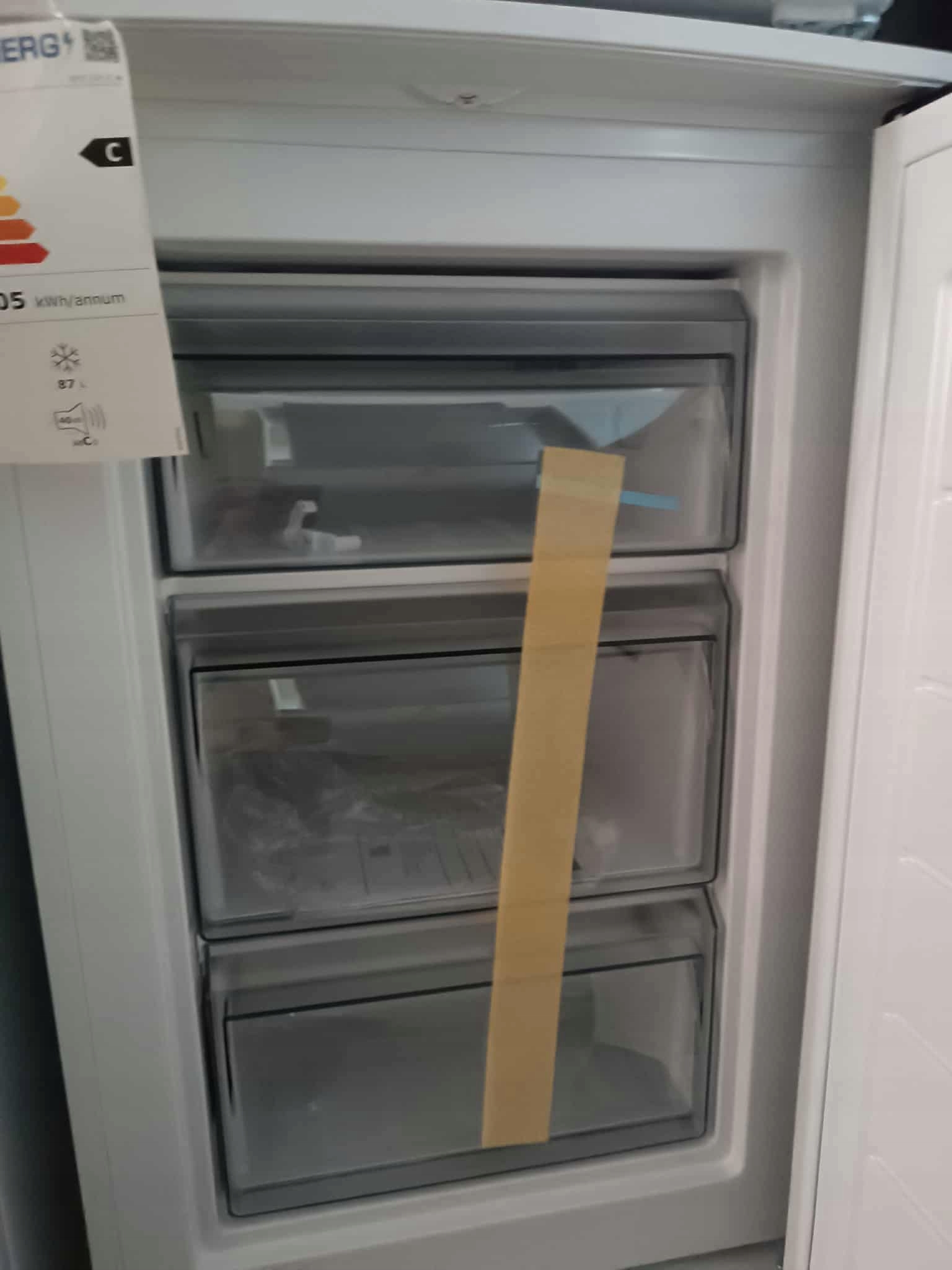 Общая емкость 87 литров, прибл. белого цвета, достаточно места для ваших принадлежностей. Три вместительных ящика позволяют удобно хранить широкий ассортимент продуктов. Если вам нужно место для замороженной пиццы или замороженных овощей, здесь вы найдете достаточно места для хранения.