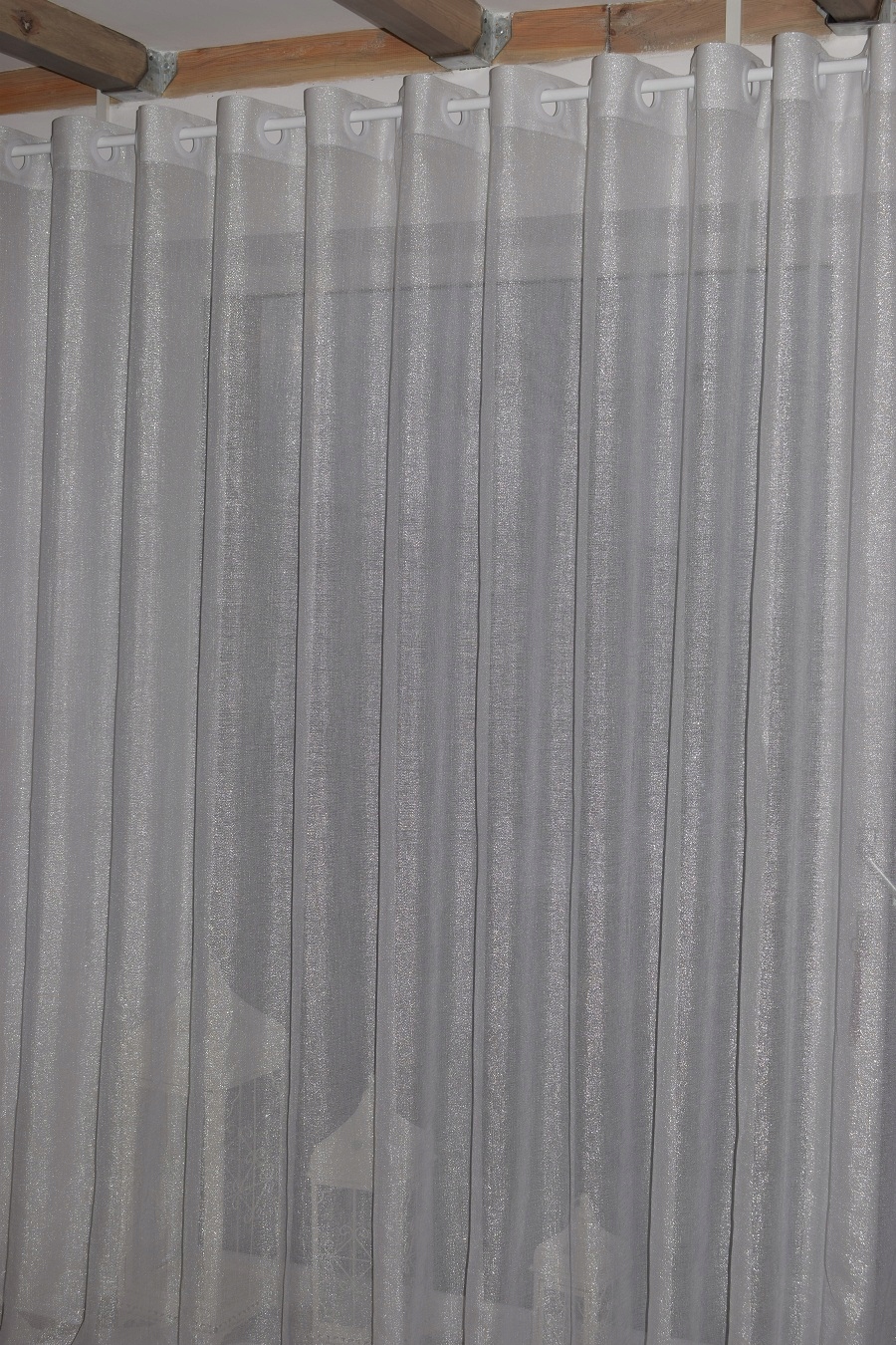 Очень эксклюзивная штора кремового, холодного белого цвета. Поэтому, если через месяц-два вам понадобится еще одна штора с люверсами, я не гарантирую, что оттенок белого будет идентичен оттенку ранее заказанной шторы.