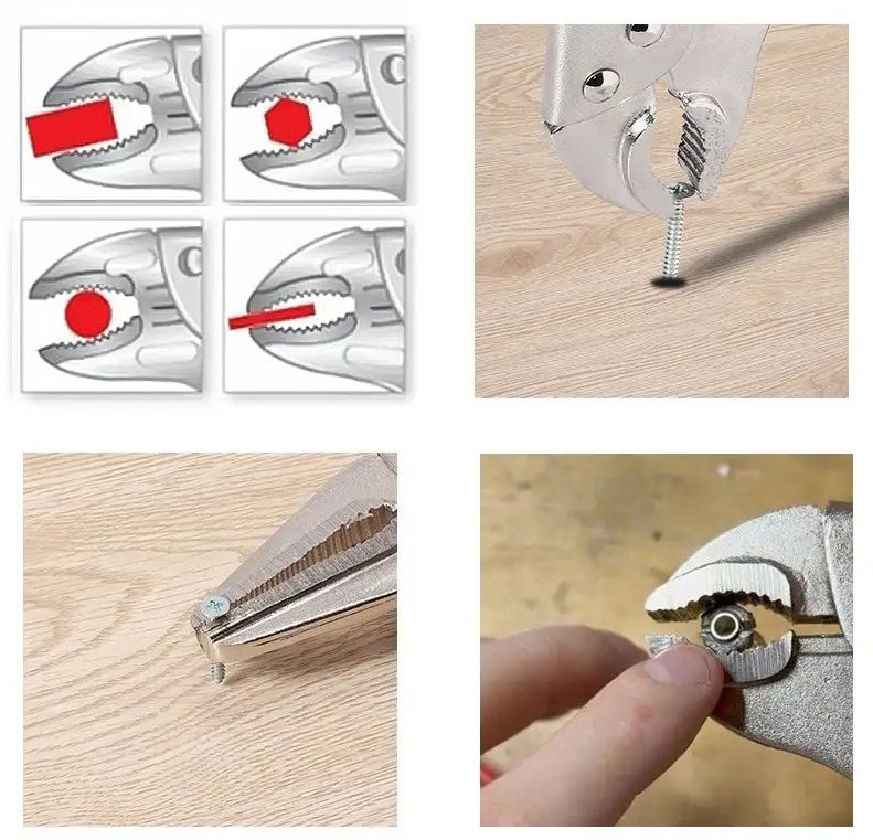 ► Благодаря регулируемой силе зажима и различным размерам плоскогубцев набор подходит для удержания, блокировки, сжимания и удерживания различных элементов – от мелких шурупов до труб или профилей.
