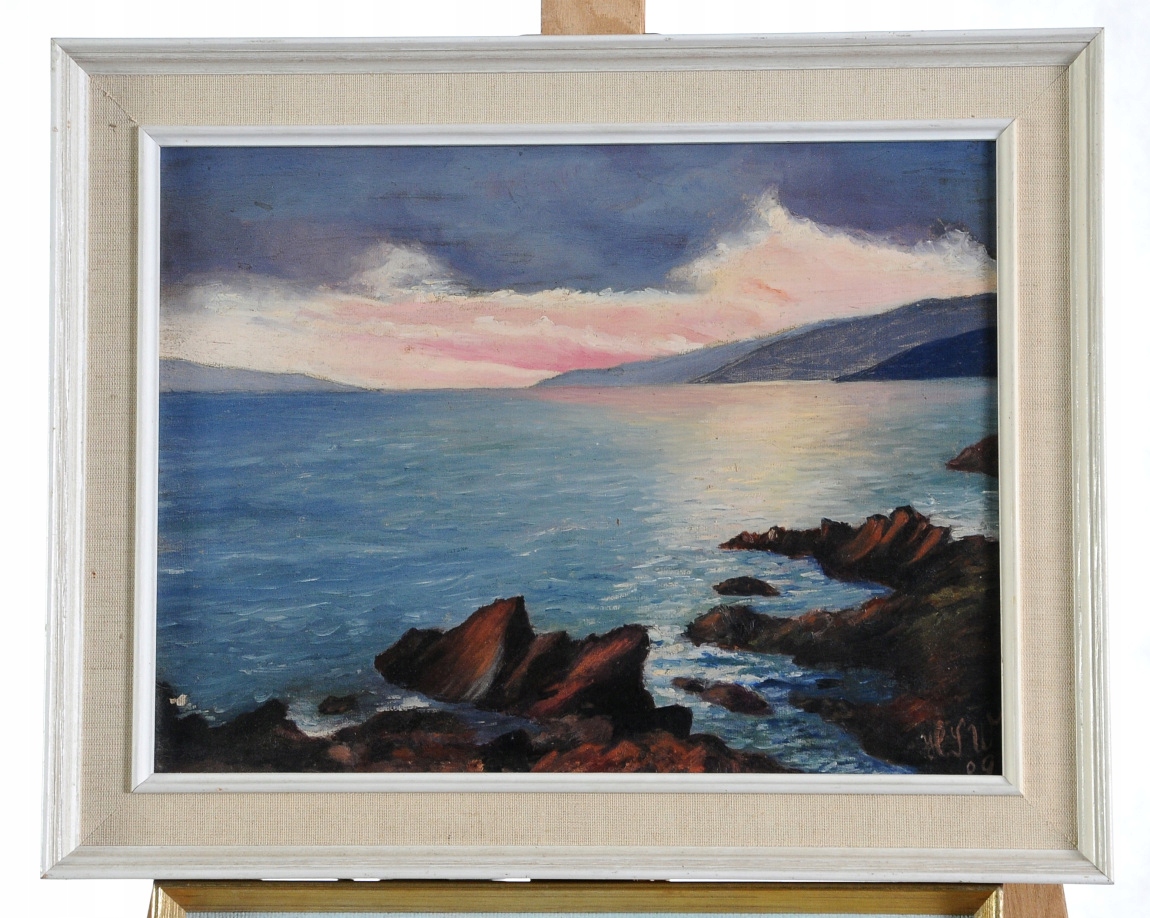 "Sea Bay" Красивая очень старая масляная живопись 1909 !!!