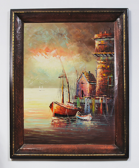 Предмет продажи — старинная, старинная, стильная морская картина, написанная вручную.
