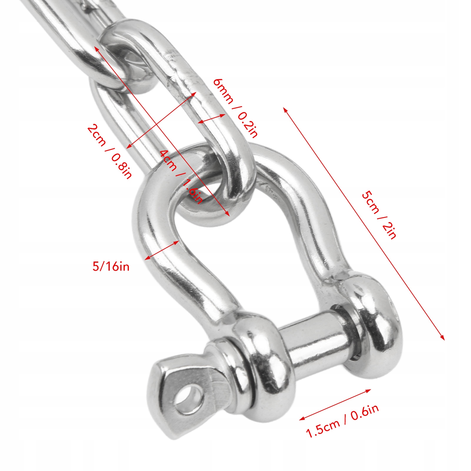 1¥(Прочный материал): Эта якорная поводковая цепь длиной 6,6 фута, изготовленная из нержавеющей стали марки 316, разработана для того, чтобы выдерживать суровые морские условия, обеспечивая прочность и долговечность.