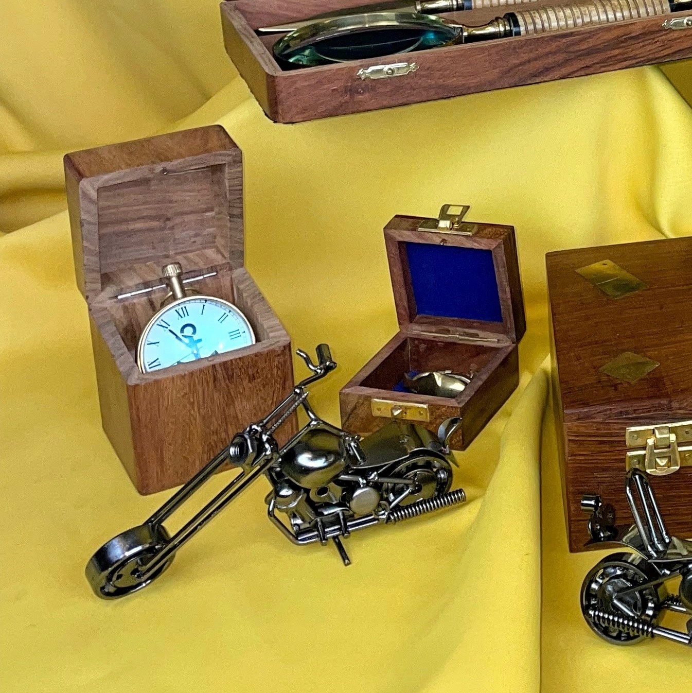 Небольшие аккуратные часы в латунном корпусе — отличный декоративный элемент для интерьеров в морском и ретро-стиле, подойдут как настольные часы или украшение камина. В самом центре циферблата находится якорь, подчеркивающий морской характер часов. Циферблат белый, с черными римскими цифрами в стиле ретро. Благодаря двояковыпуклому стеклу поверхность циферблата кажется слегка аппроксимированной. Часы оформлены в элегантных цветах: золотом, белом и черном. Шкатулка изготовлена из палисандра, сверху имеет латунный якорь. Идеально подойдет в качестве подарка моряку, моряку или путешественнику. Часы питаются от электрических батареек. Для замены батарейки выкручиваем часы.Коротко: - часы в деревянной коробке - материал: латунь, стекло, деревянная коробка - часы из латуни, выпуклое двояковыпуклое стекло - ретро циферблат с римскими цифрами, якорный мотив на циферблате - Размеры часов: высота 7 см, ширина 5 см - Питание: батарейки - Коробка из палисандра, с якорем сверху - идея для красивого подарка Размеры изделия: 8 х 8 х 8 см. Вес изделия: 0,350 кг