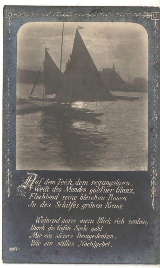 Как следует из названия. Очень редкая открытка, отправленная с немецкой авиабазы в Пуцке немецким военно-морским летчиком - 1918 год. Открытка с изображением залива - на заднем плане видна Пуцкая приходская церковь.