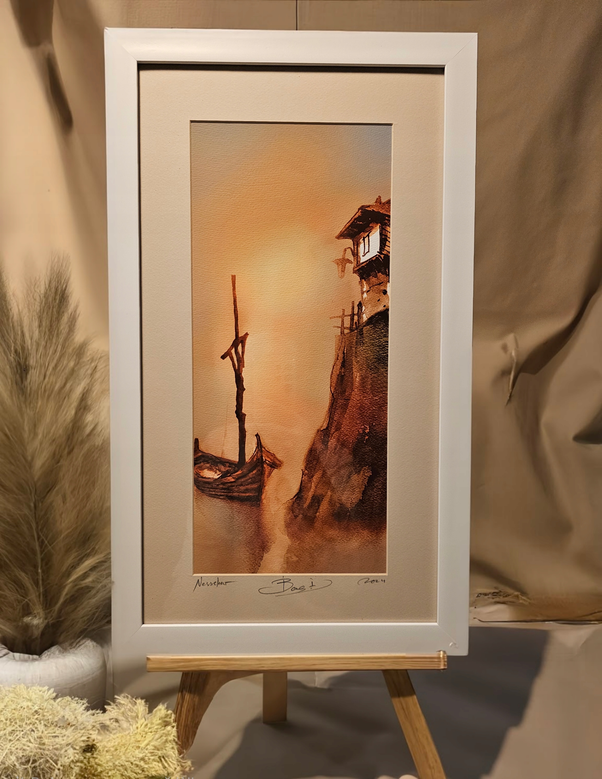 Картина «Морской вечер» погружает зрителя в атмосферу заката над морем, когда солнце медленно опускается за горизонт, заливая небо и воду теплыми золотистыми и розовыми оттенками. Неподвижная лодка отражает тишину и покой на поверхности моря, придавая картине ощущение полного покоя. Художник мастерски передал нежное мерцание света и красок, создав гармоничное и вдохновляющее произведение искусства.