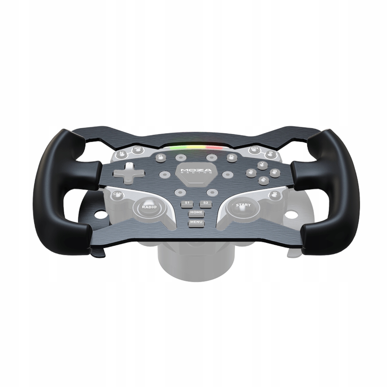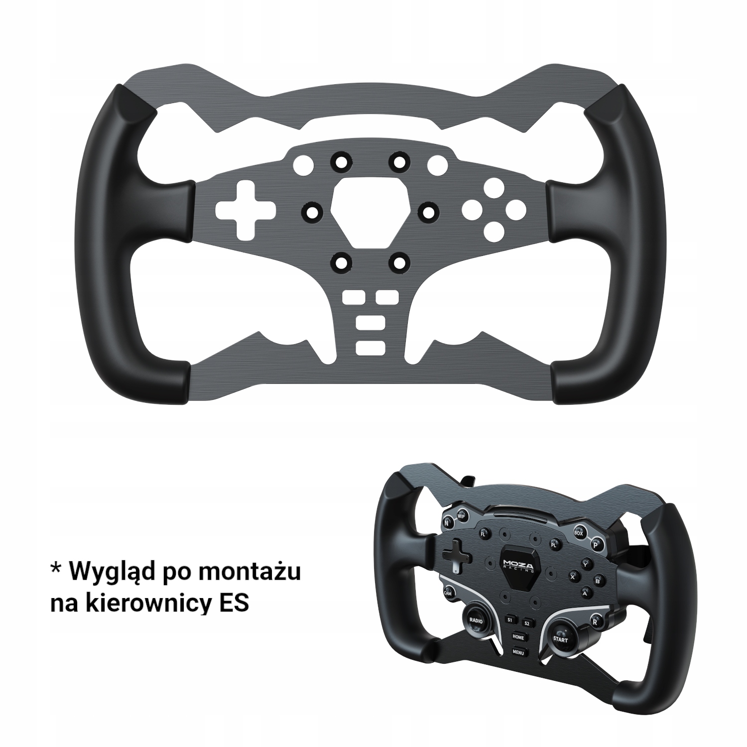Выделенная заводская формула для рулевого колеса R5 ES, которое является частью набора моза моза Mosa R5 и появляется в виде отдельного продукта (Mosa es рулевого колеса RS035). После фотографии стандартного обода вы можете преобразовать колесо колеса в профессиональный обод формулы, сохраняя функциональность всех кнопок в кнопках ES).