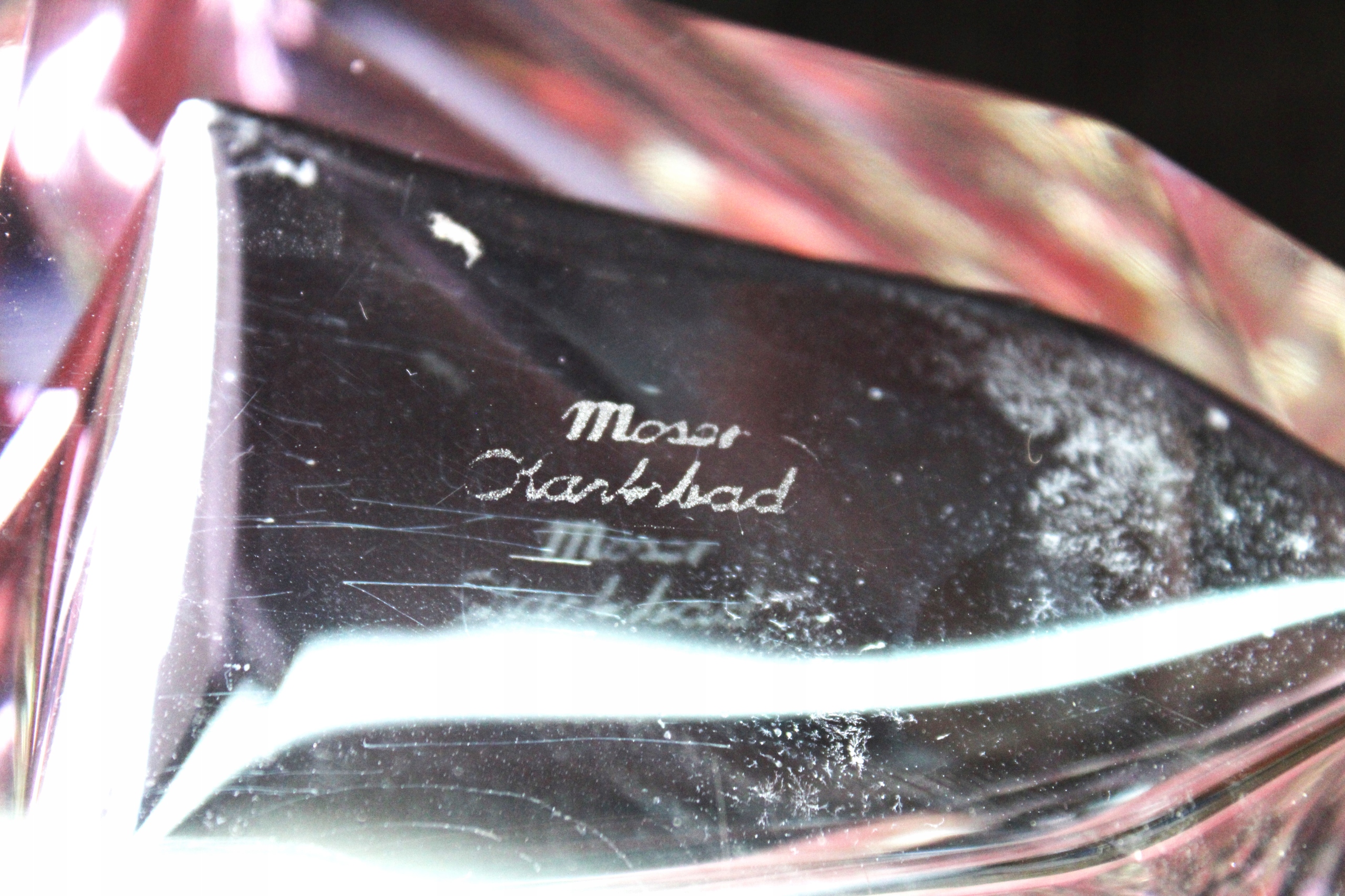 MOSER CIĘŻKA KARAFKA RĘCZNIE SZLIFOWANA SYGNOWANA SZKŁO ALEKSANDRYTOWE