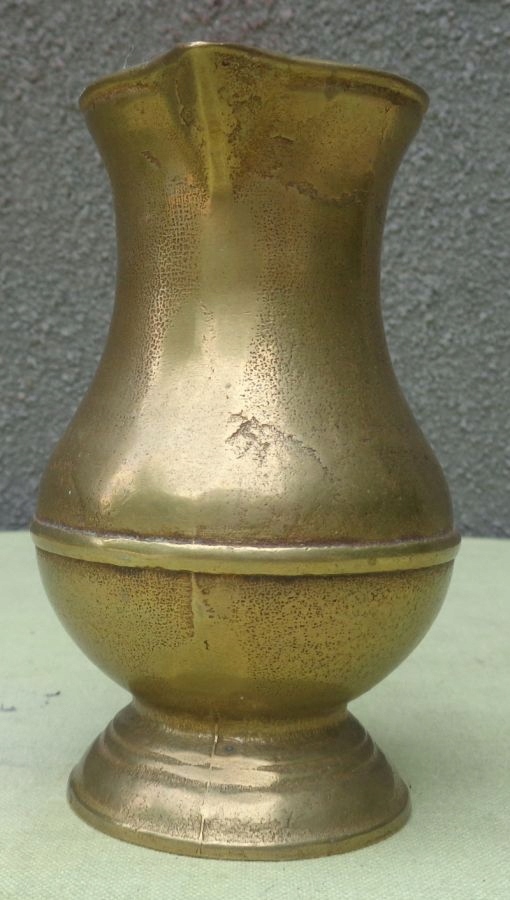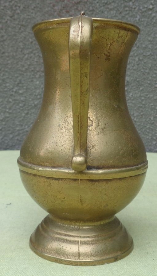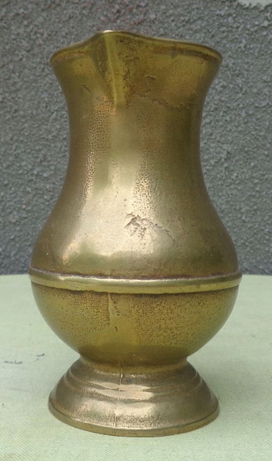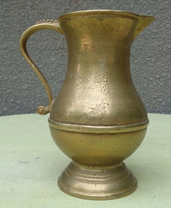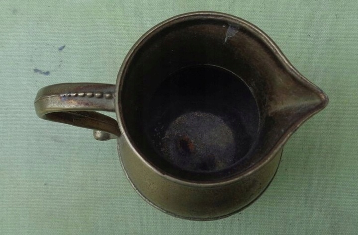 Интересный, интересный молочник из латуни 1920-х годов. Экспонат имеет интересное круглое основание, сужающееся к верху. Средняя часть слегка выпуклая. Он украшен интересной бегущей полоской. Молочник сужается кверху. Экспонат имеет интересно оформленную и профилированную ручку. Экспонат красиво смотрится на любом столе. Всем рекомендую.