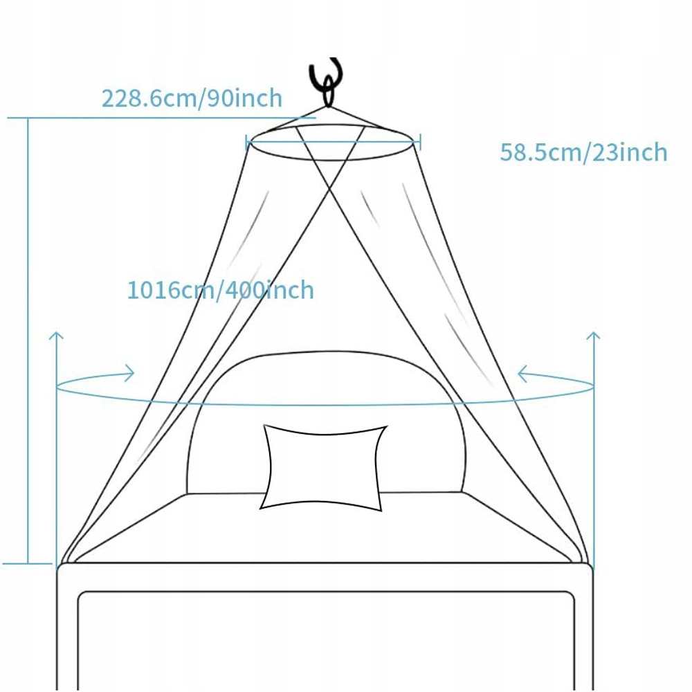 ⭐️【Подходящий размер】 - Диаметр верха: 58 см; диаметр дна: 1006 см; высота: 228 см, подходит для большинства односпальных кроватей. При использовании лучше всего прижать край москитной сетки под матрас, чтобы комары не проникли из щели рядом с ним