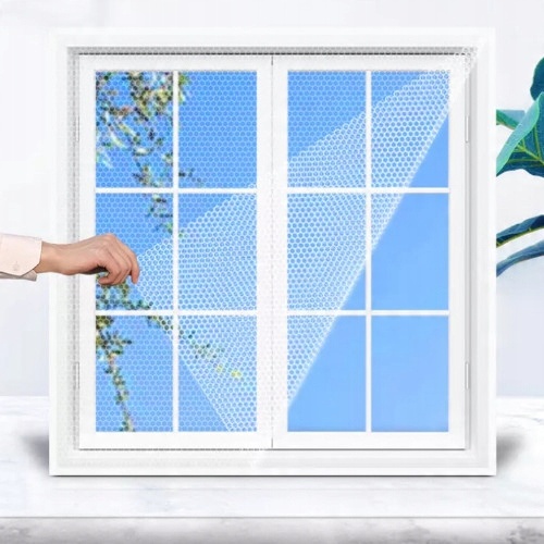- снимите бумажную полоску с монтажной ленты, наклейте ленту на очищенную внутреннюю сторону оконной рамы, - установите сетку на ленту и отрежьте лишний материал. Сетка многосезонная, ее можно стирать при 30 градусах.