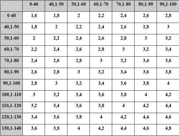 После тщательного замера выберите из таблицы подходящий диапазон ширины и высоты в сантиметрах.