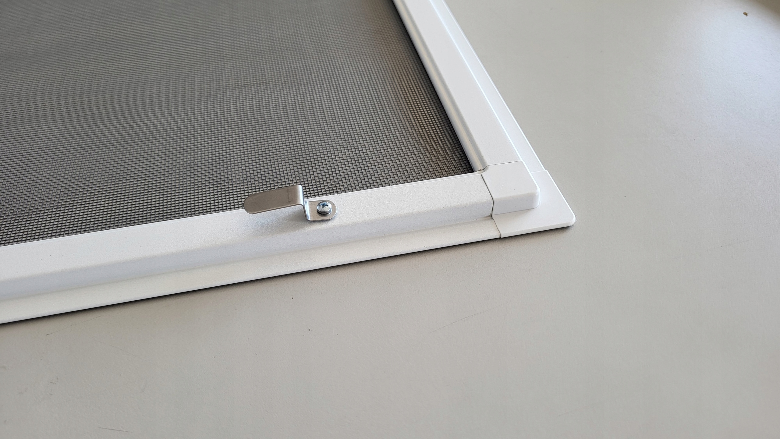 Москитная сетка собирается из разрезанной сетки. Готов к установке на окно ПВХ. Просверлены отверстия для удобного прикручивания монтажных пластин.