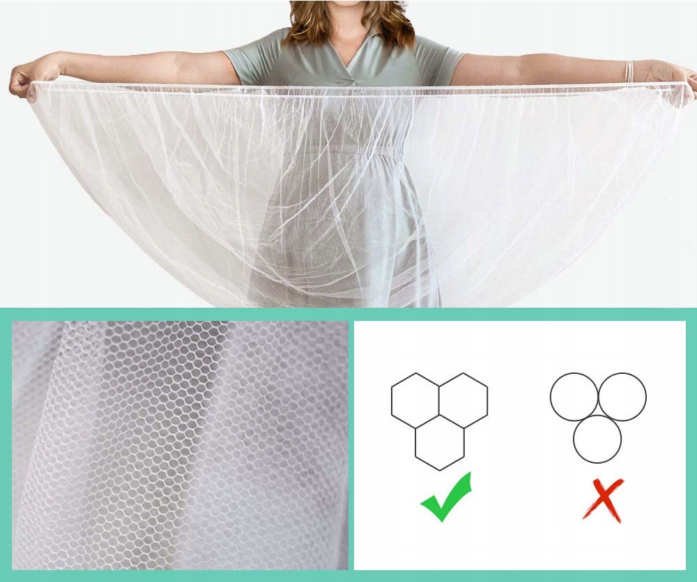 Москитная сетка изготовлена из нежного, дышащего материала – она позволяет ребенку свободно дышать и смотреть ему в глаза. Он обеспечивает хорошую защиту от насекомых, поскольку имеет прочную, прочную и мелкую сетку. Его легко надевать, поэтому он практичен в использовании.