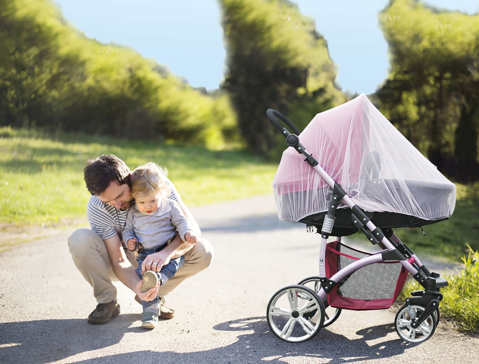Москитная сетка изготовлена из нежного, дышащего материала – она позволяет ребенку свободно дышать и смотреть ему в глаза. Он хорошо защищает от насекомых, поскольку имеет прочную, прочную и мелкую сетку. Его легко надевать, поэтому он практичен в использовании.