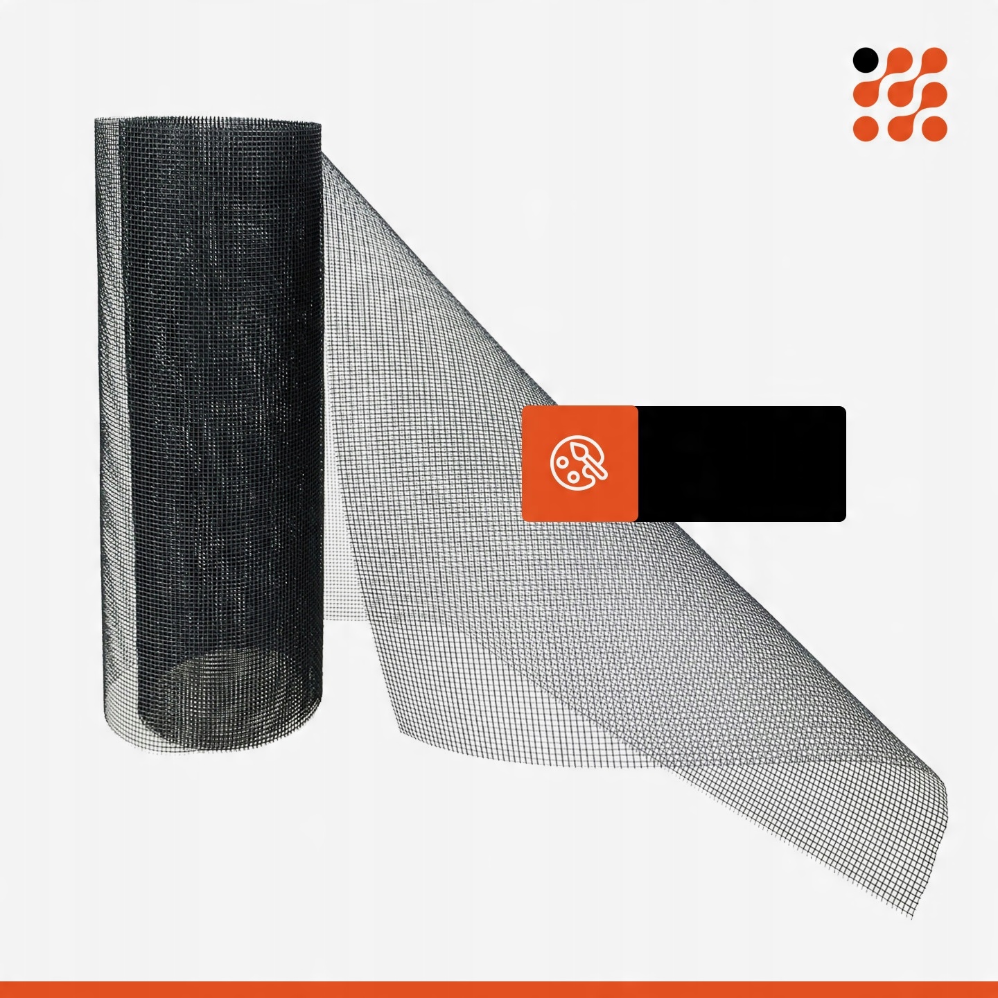 Готово установлено с размером 1,4 мс x 1,6 м b> в черном. Сетка сделана из волоконного стекла. Это тот же тип профессиональной сетки, который используется при производстве сетевых экранов комаров в алюминиевых рамках