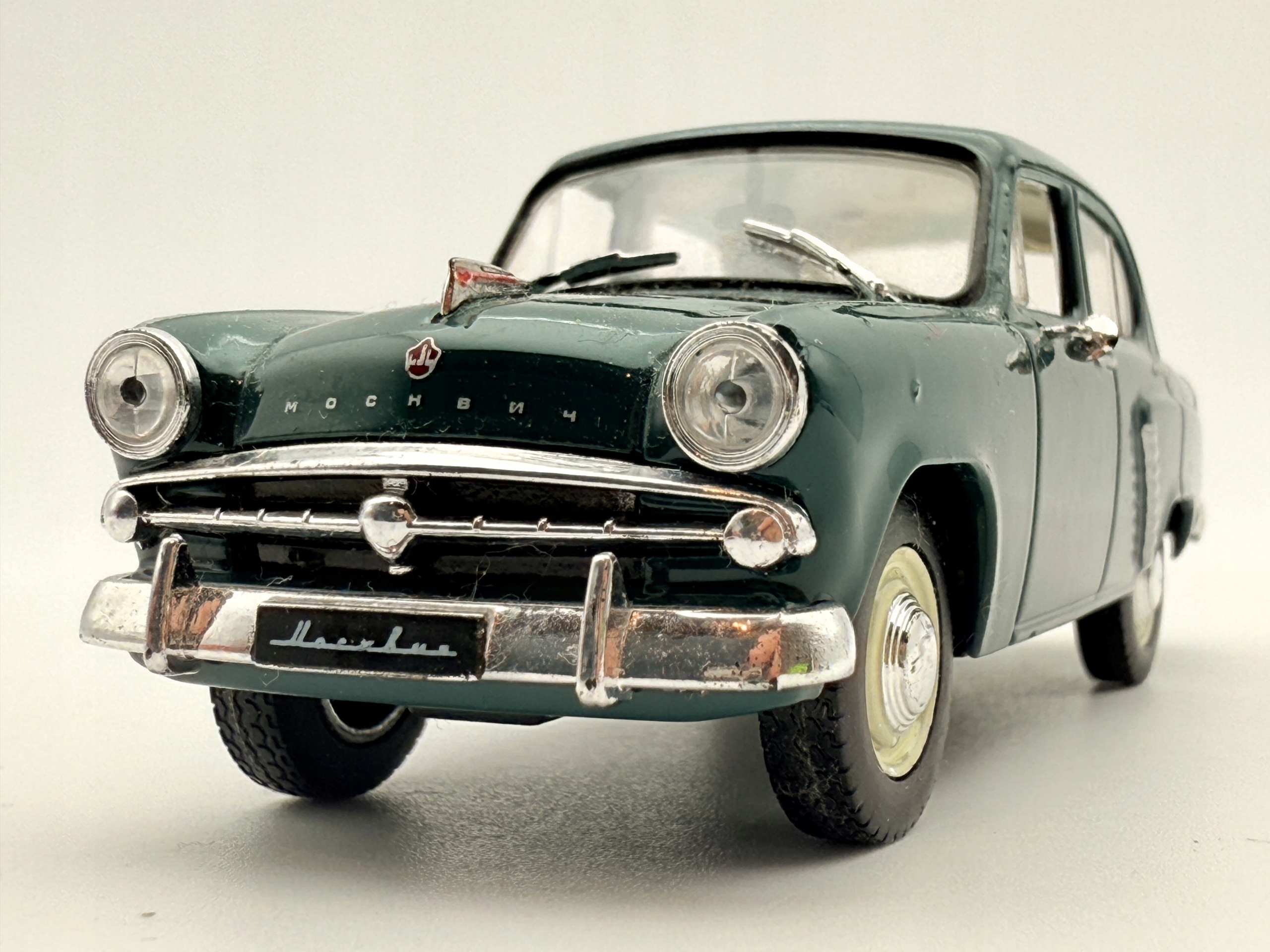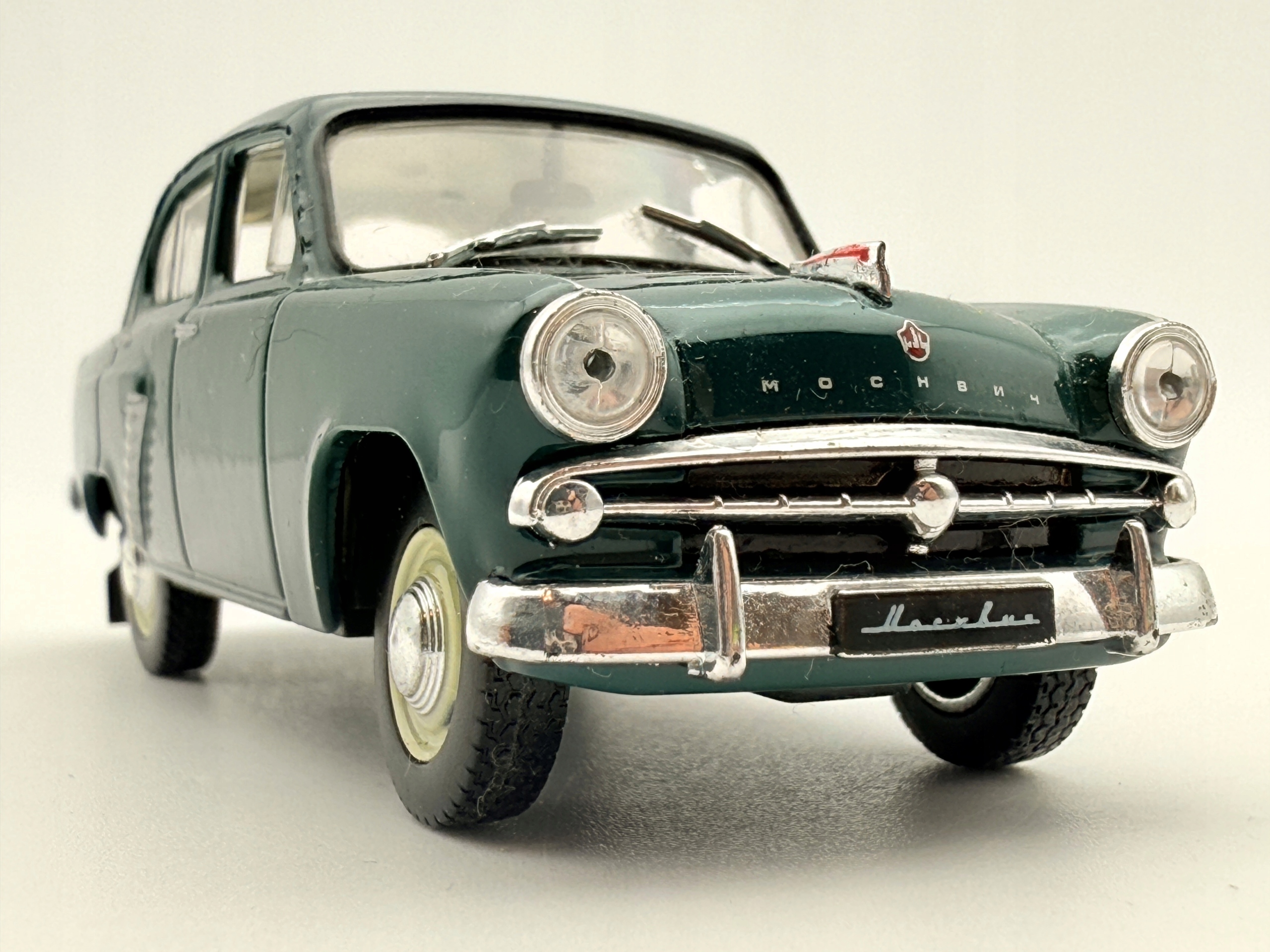 Модель основана на реальном автомобиле MOSKWICZ 407, популярном в 1950-х и 1960-х годах. Его цвета отсылают к классическим цветам автомобилей той эпохи, а детали отражают стиль ретро. Модель не принадлежит к определенной тематической серии, но ее историческая значимость делает ее интересной для автолюбителей.