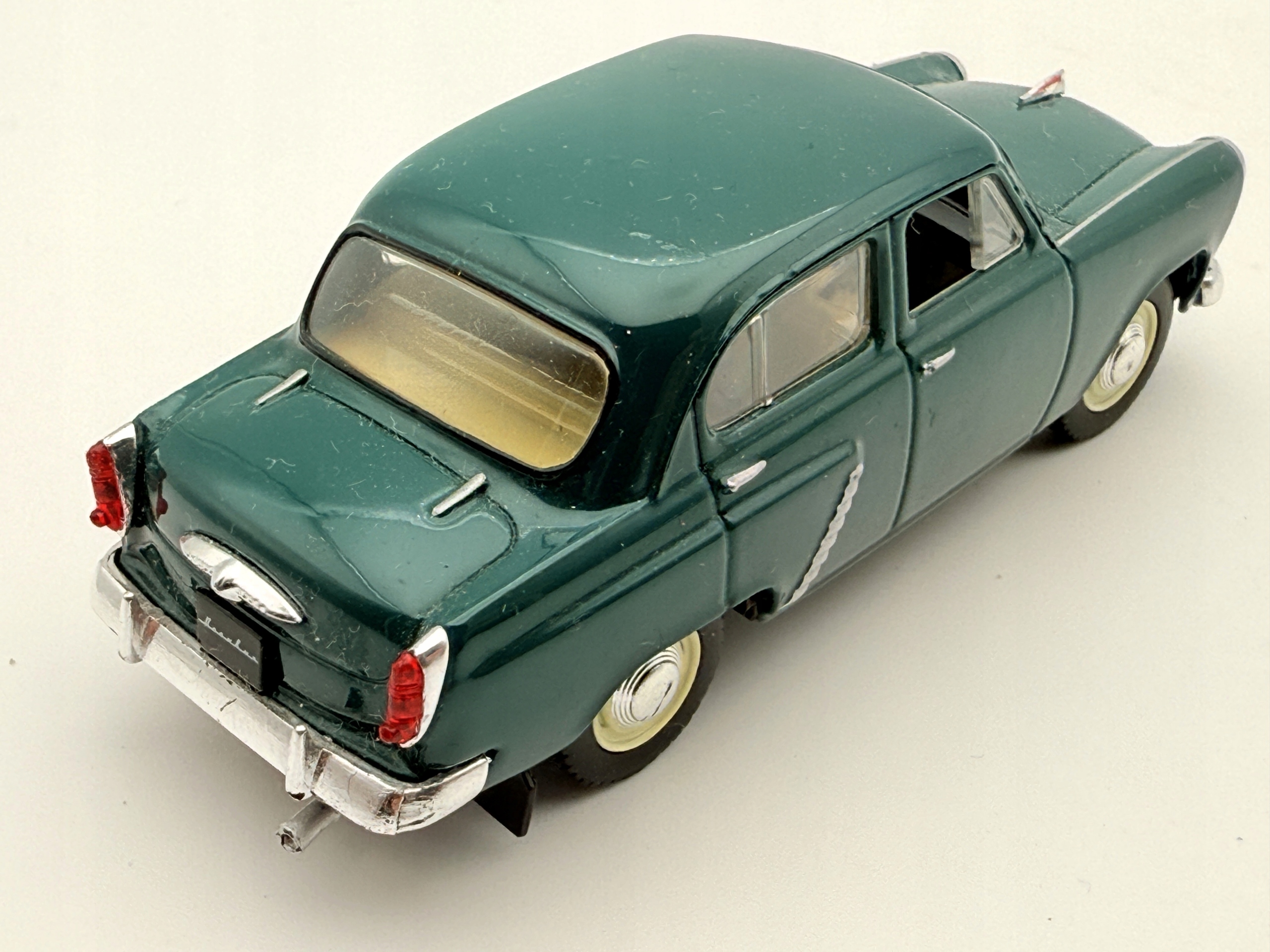 Резорак MOSKWICZ 407 – настоящая находка для коллекционеров, ценящих исторические модели. Его зеленый корпус в сочетании с хромированными деталями привлекает внимание. Модель изготовлена из металла и пластика, что делает ее прочной. Открывающиеся двери и детально проработанный интерьер повышают его ценность. Измеренная модель имеет длину около 100 мм, что соответствует масштабу 1:43. Это прекрасный пример классического автомобиля, который непременно украсит любую весеннюю коллекцию.