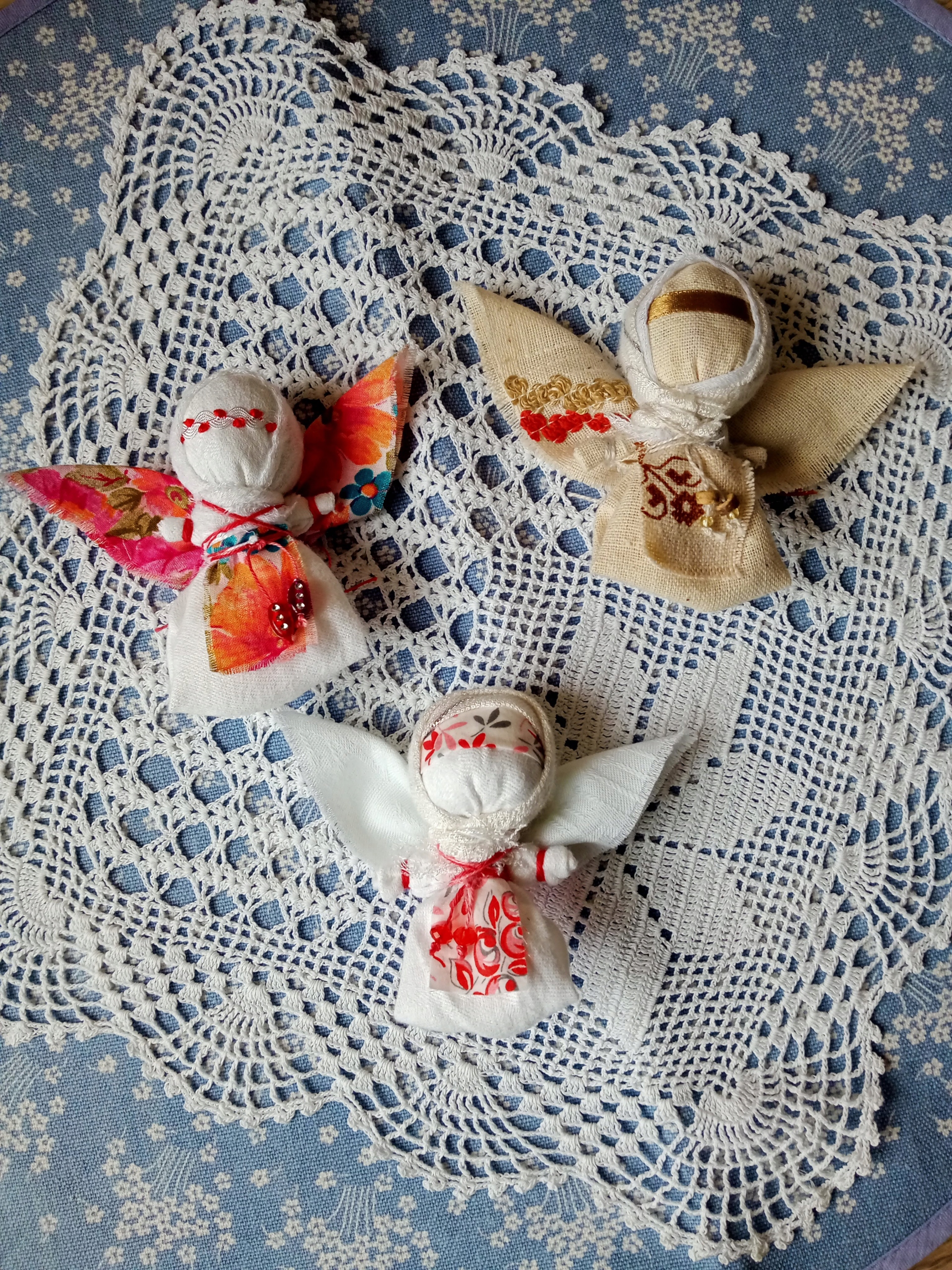 Ангелы Motanies - возникают на основе народных славянских кукол. Распространение крыльев ангелов защищает владельца от злых духов и людей. Они сделаны в соответствии со славянской традицией без использования иглы. На груди у них есть крест, который символизирует силу, веру, хорошую силу, позитивную энергию, солнце, богатство и красоту. Идеально подходит для подарка для близких и уникальных людей. Цена на 3 штуки