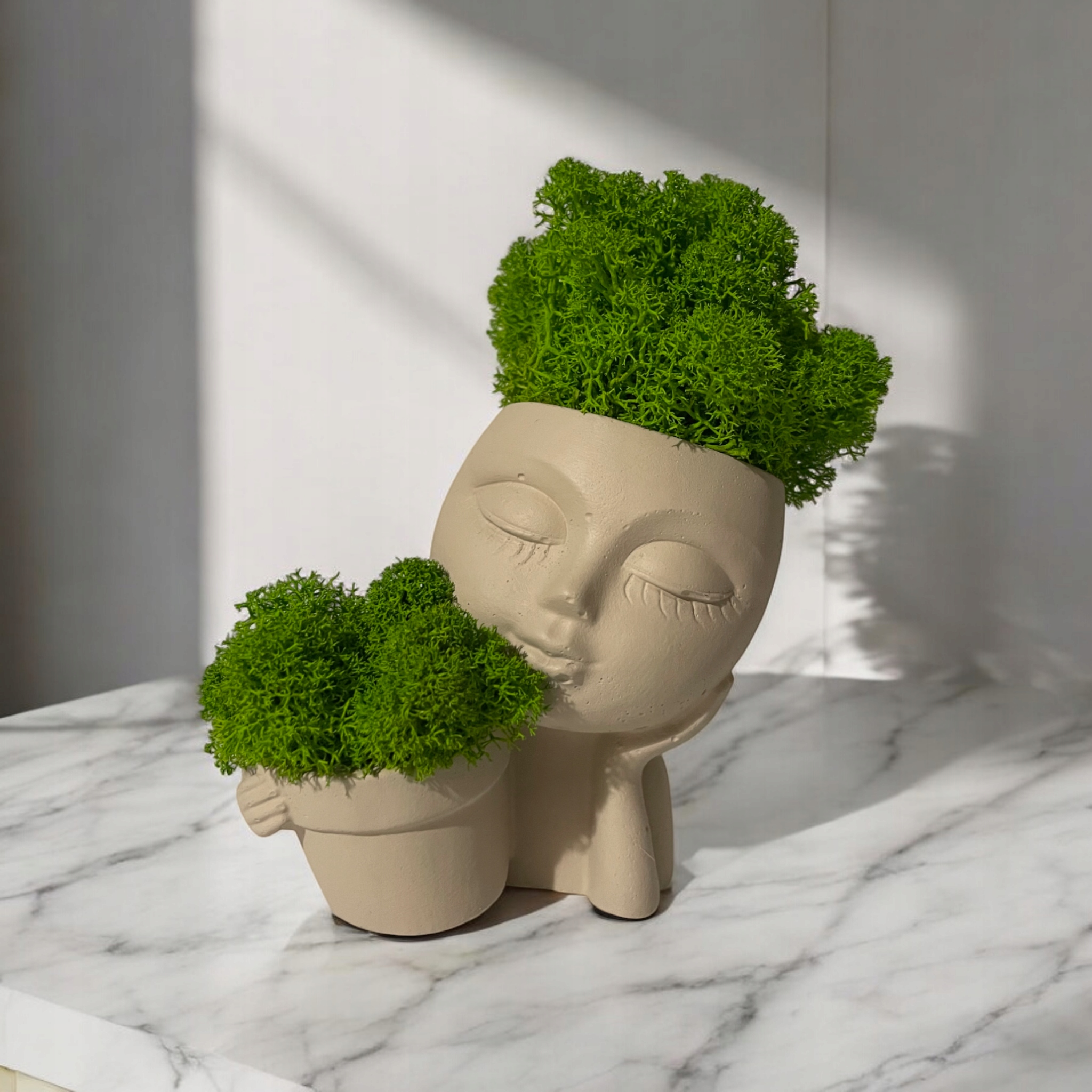 Предлагаю горшок для цветов из бетона с лентой ручной работы - современное украшение, идеально подходящее для дома, офиса или в подарок. Минималистичный дизайн и натуральный мох создают неповторимый акцент, подходящий к любому интерьеру.