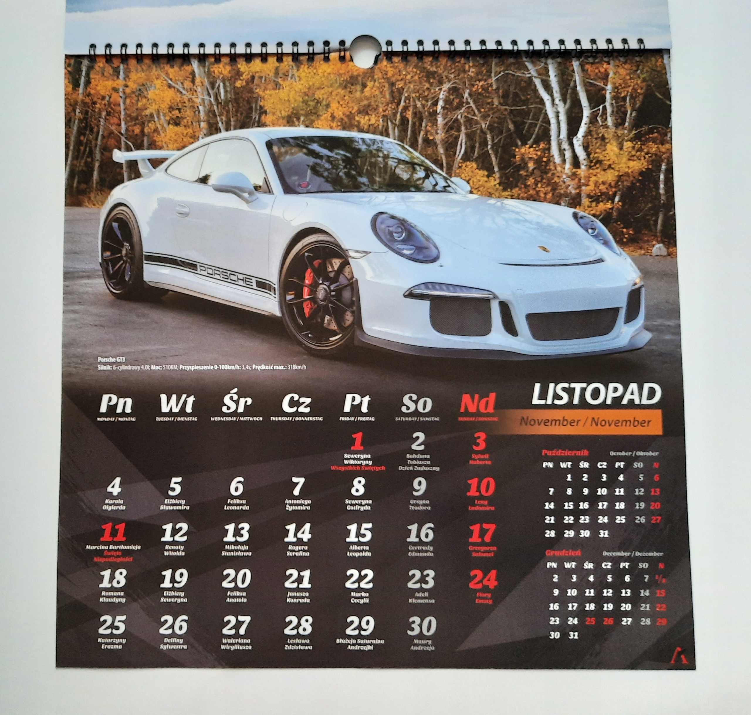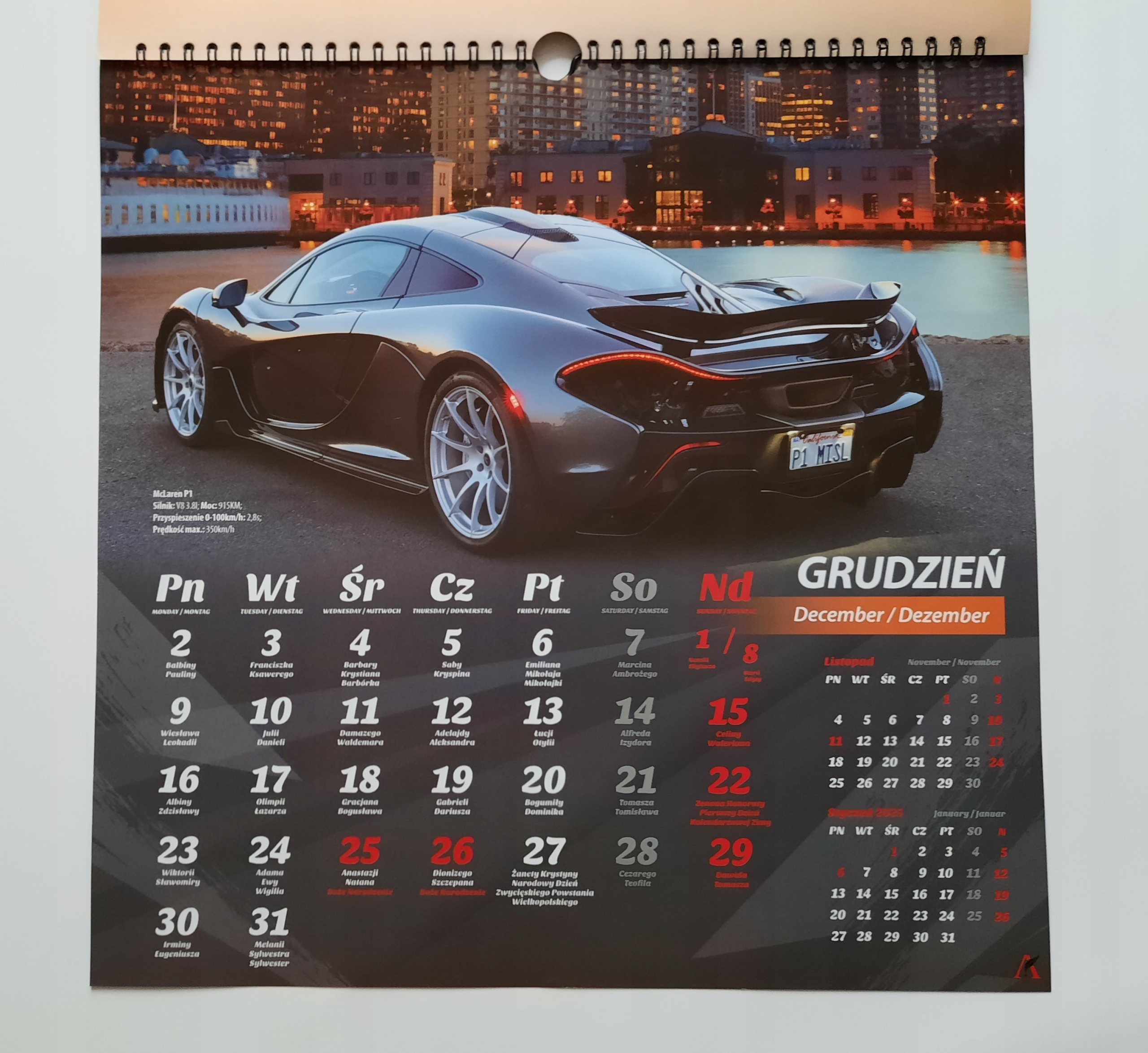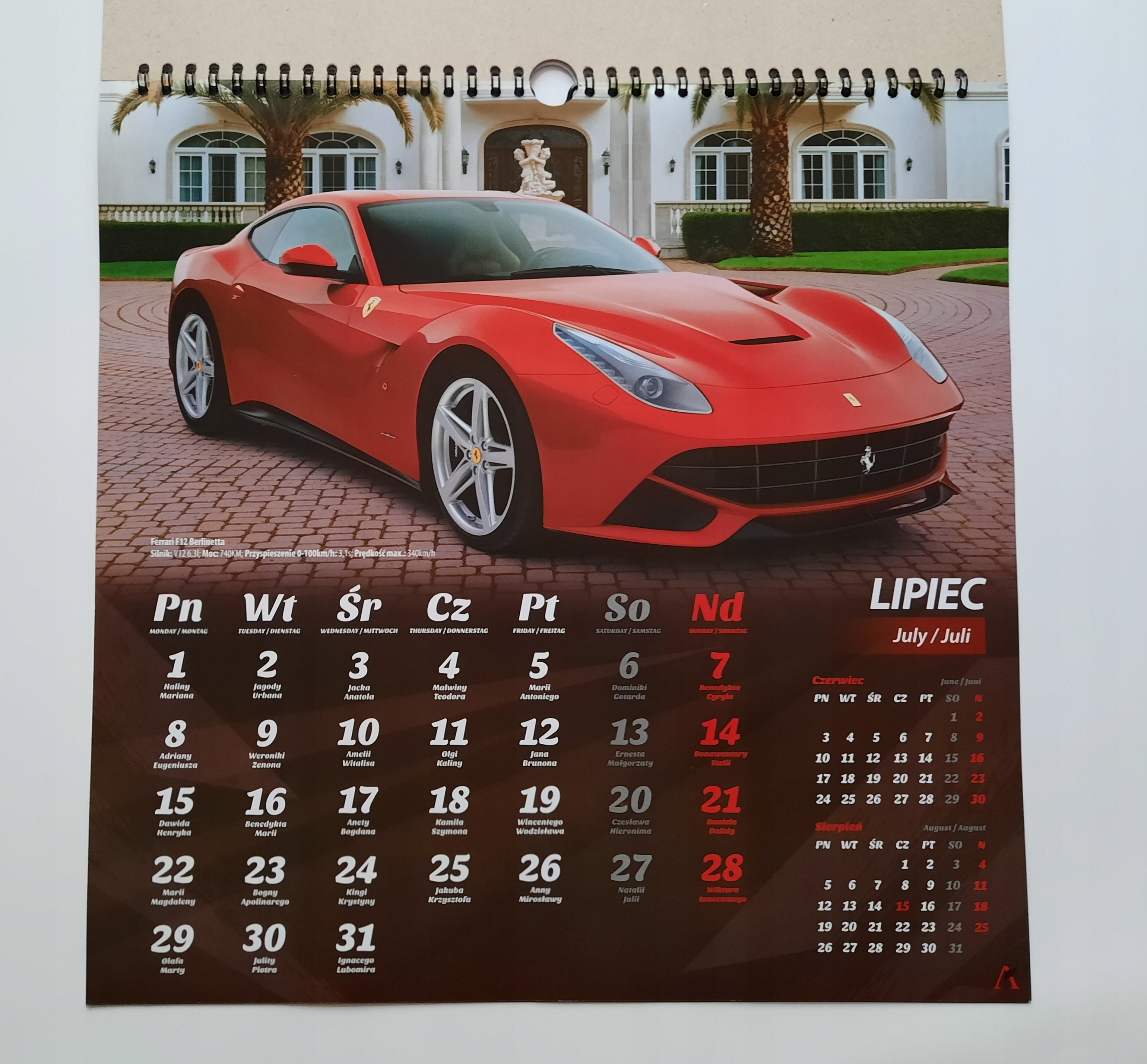Moto cars kalendarz 2024 samochody bryki auta mustang porsche mercedes