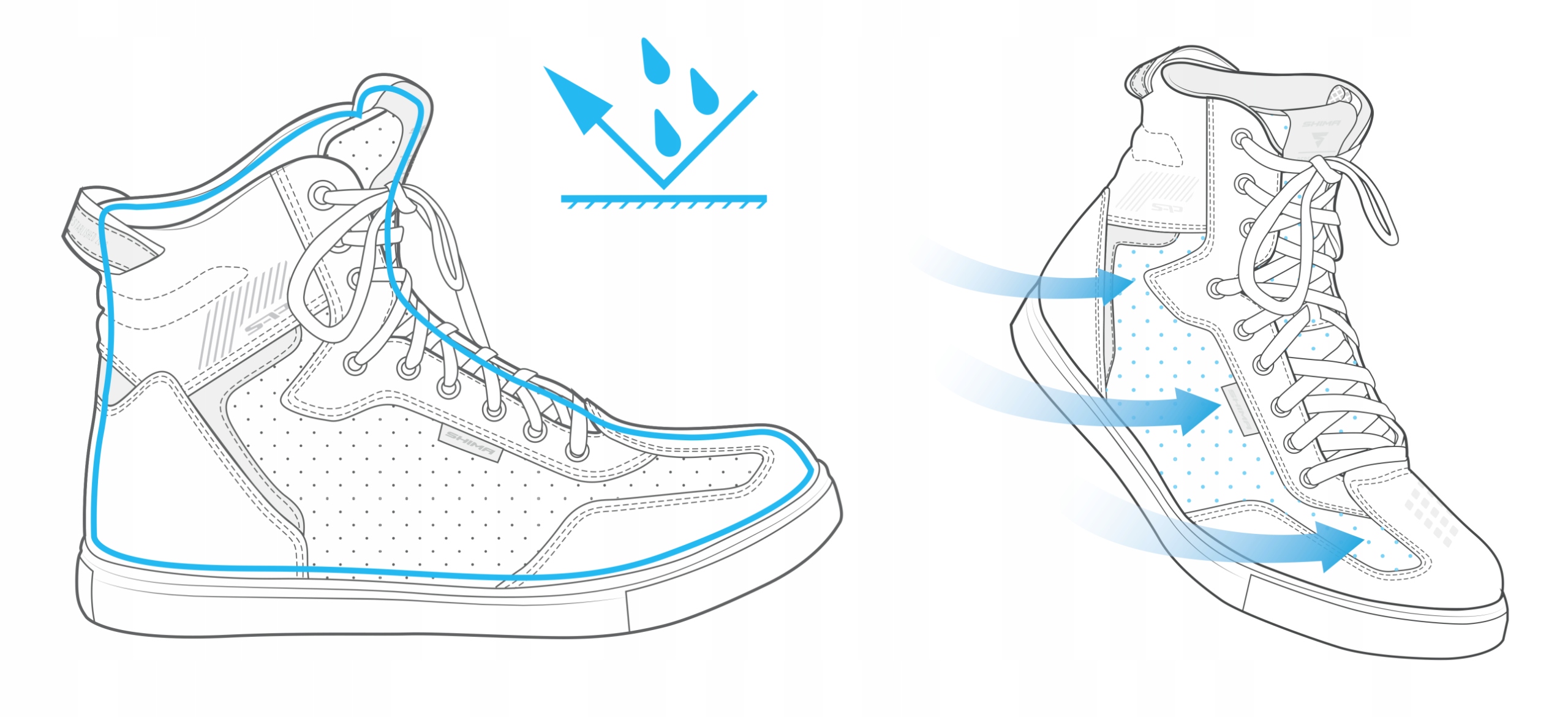 - ВЕНТИЛЯЦИЯ – Изготовлены из натуральной кожи и имеют перфорированные области, которые позволяют для свободного потока воздуха и обеспечения лучшего термоконтроля.