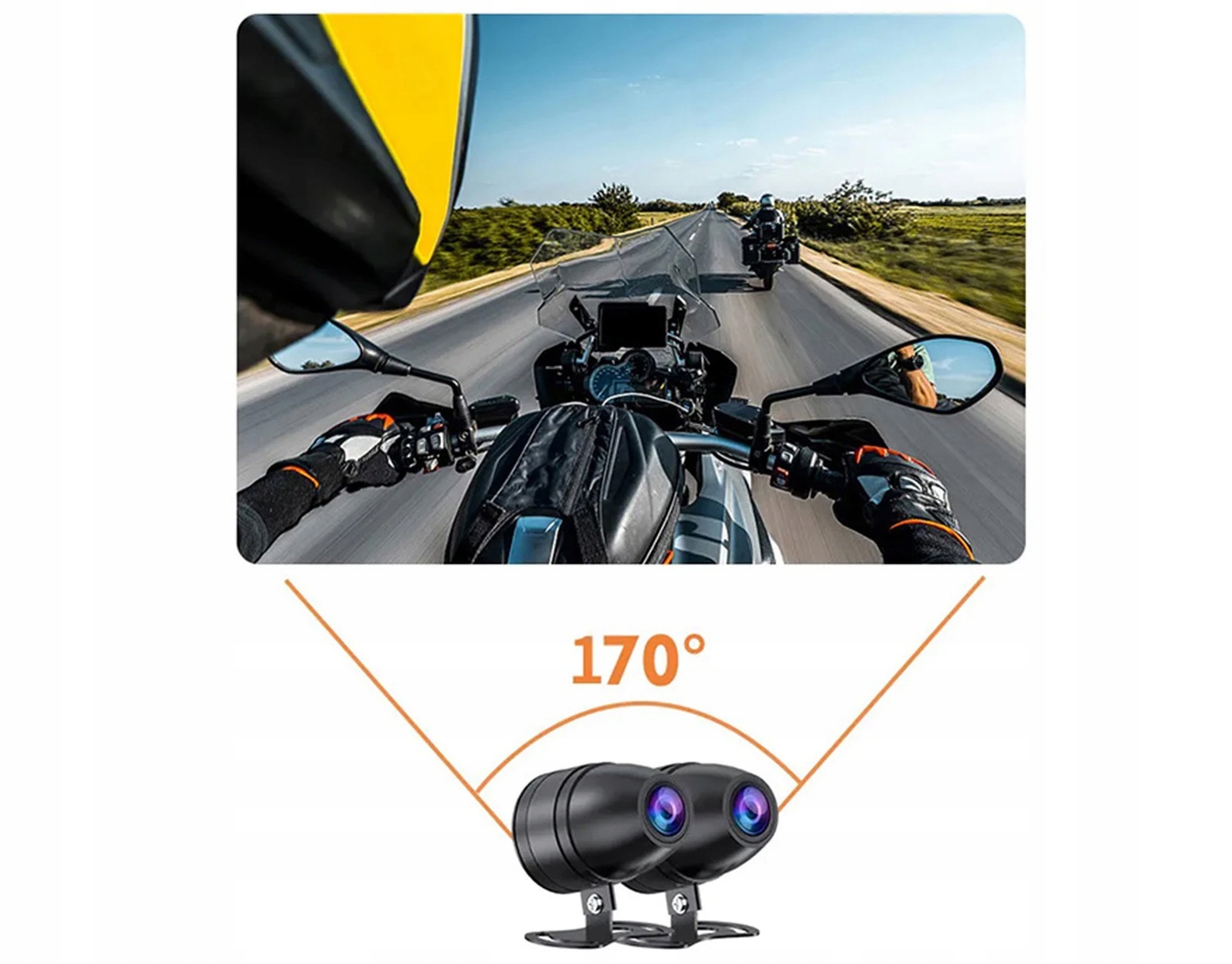 ⭐ Двойная камера мотоцикла - записывает изображение из двух камер в разрешении Full HD 1920 × 1080 b>, записывая как спереди, так и сзади транспортного средства.